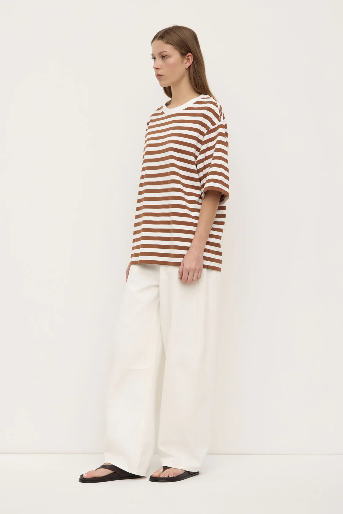 Assembly Label Monte Stripe Cotton Short Sleeve Tee - Earth/Antique White