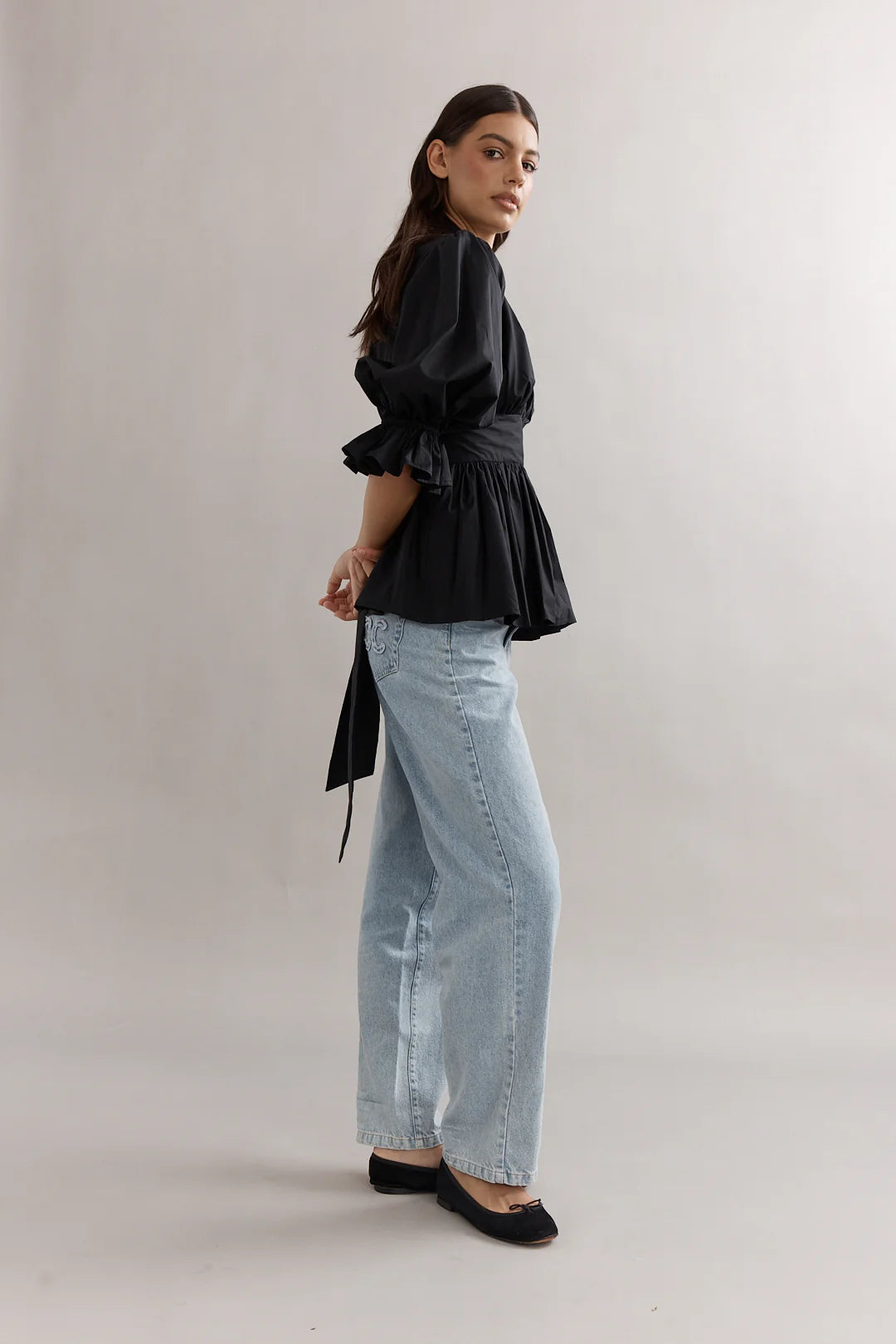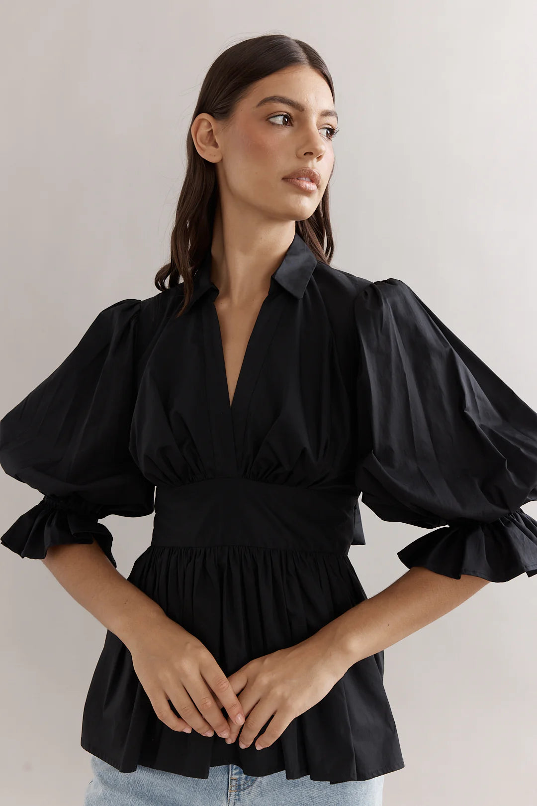 Caitlin Crisp Elena Blouse - Black Poplin