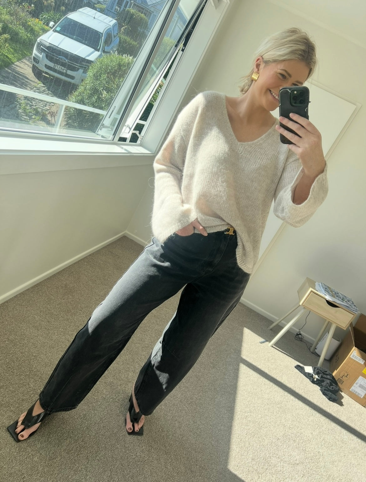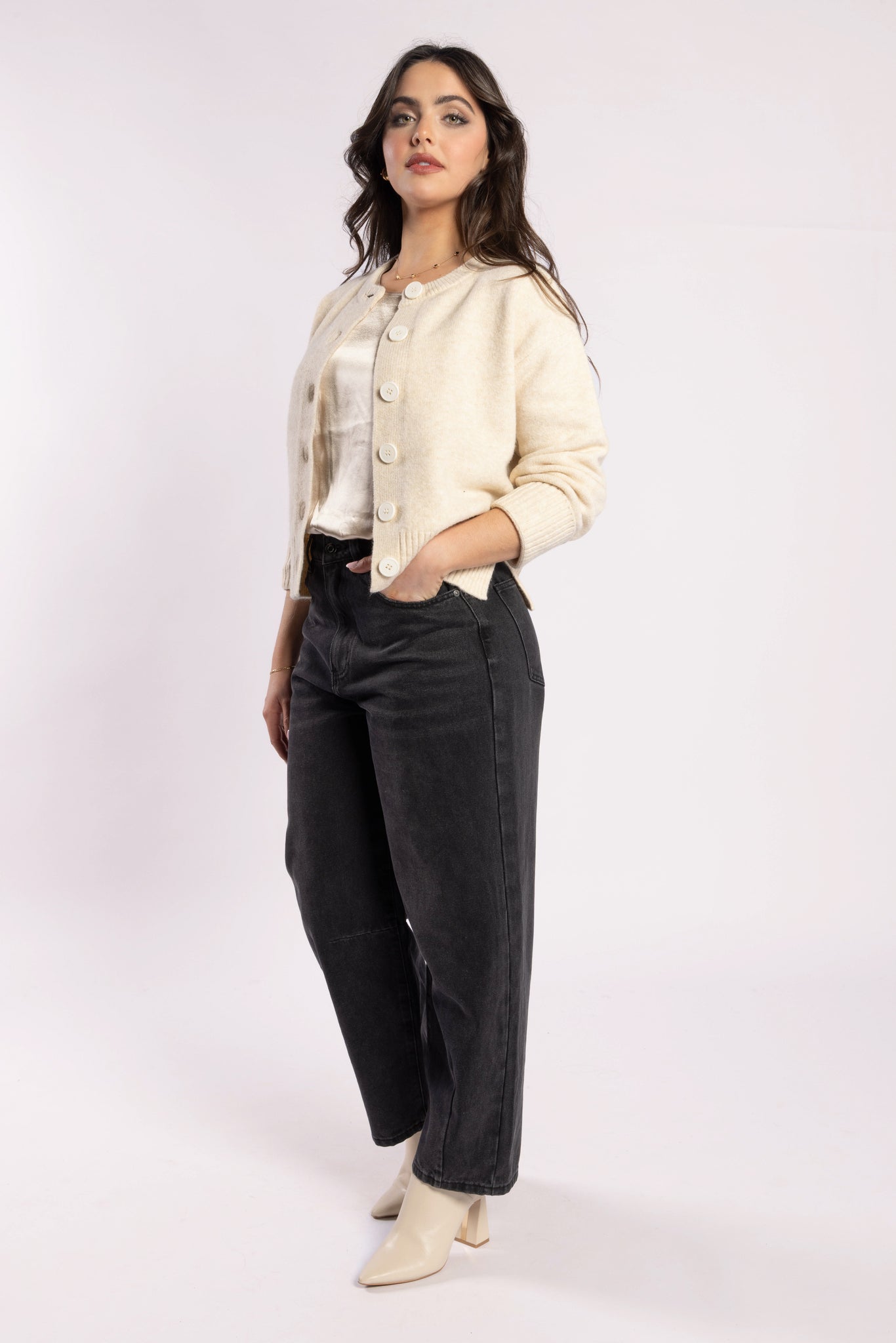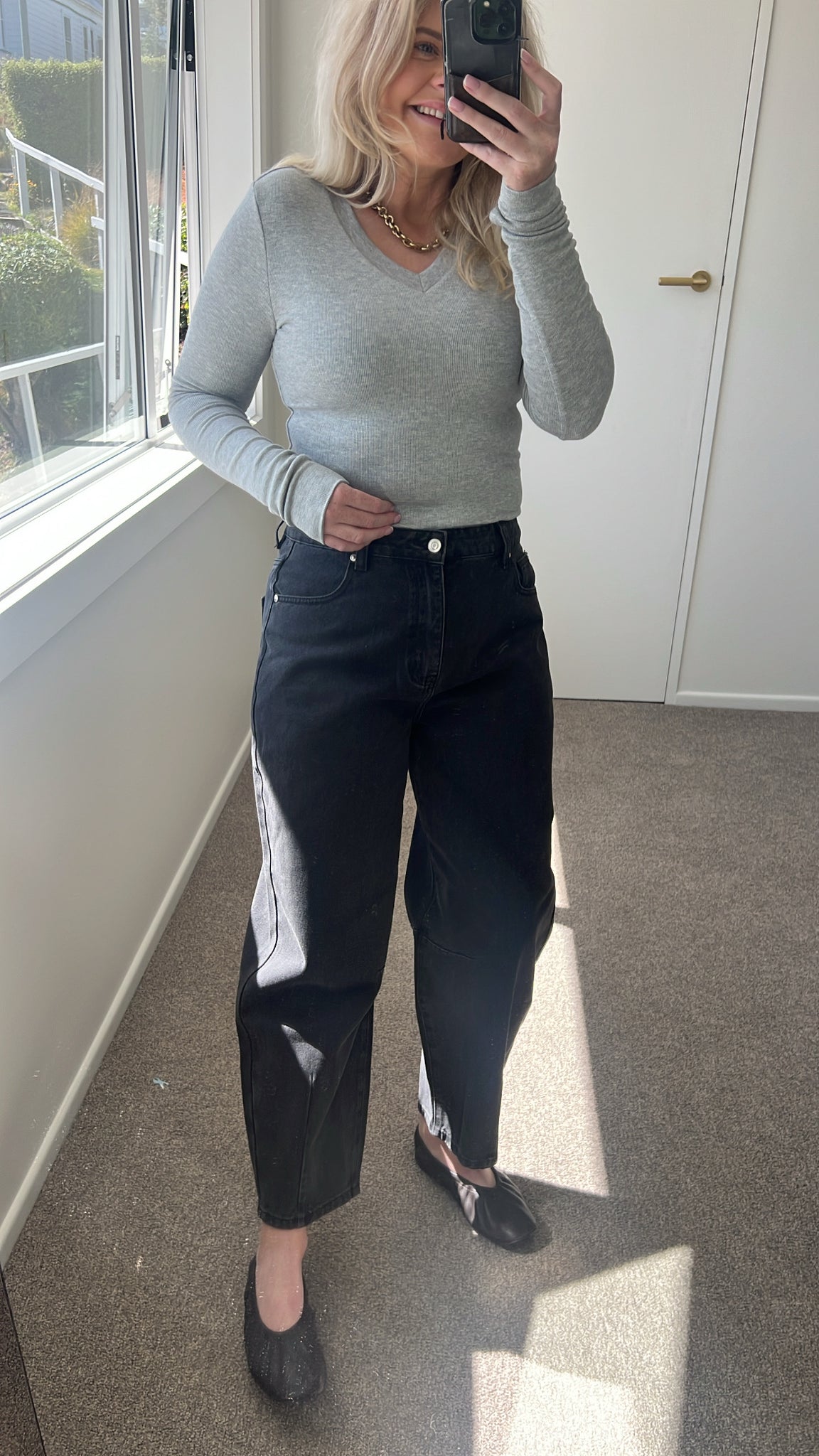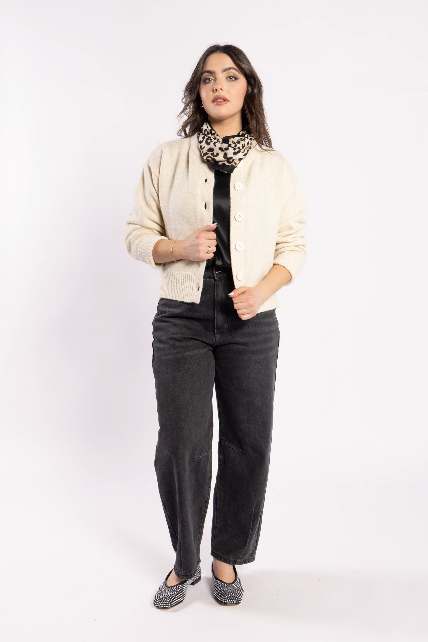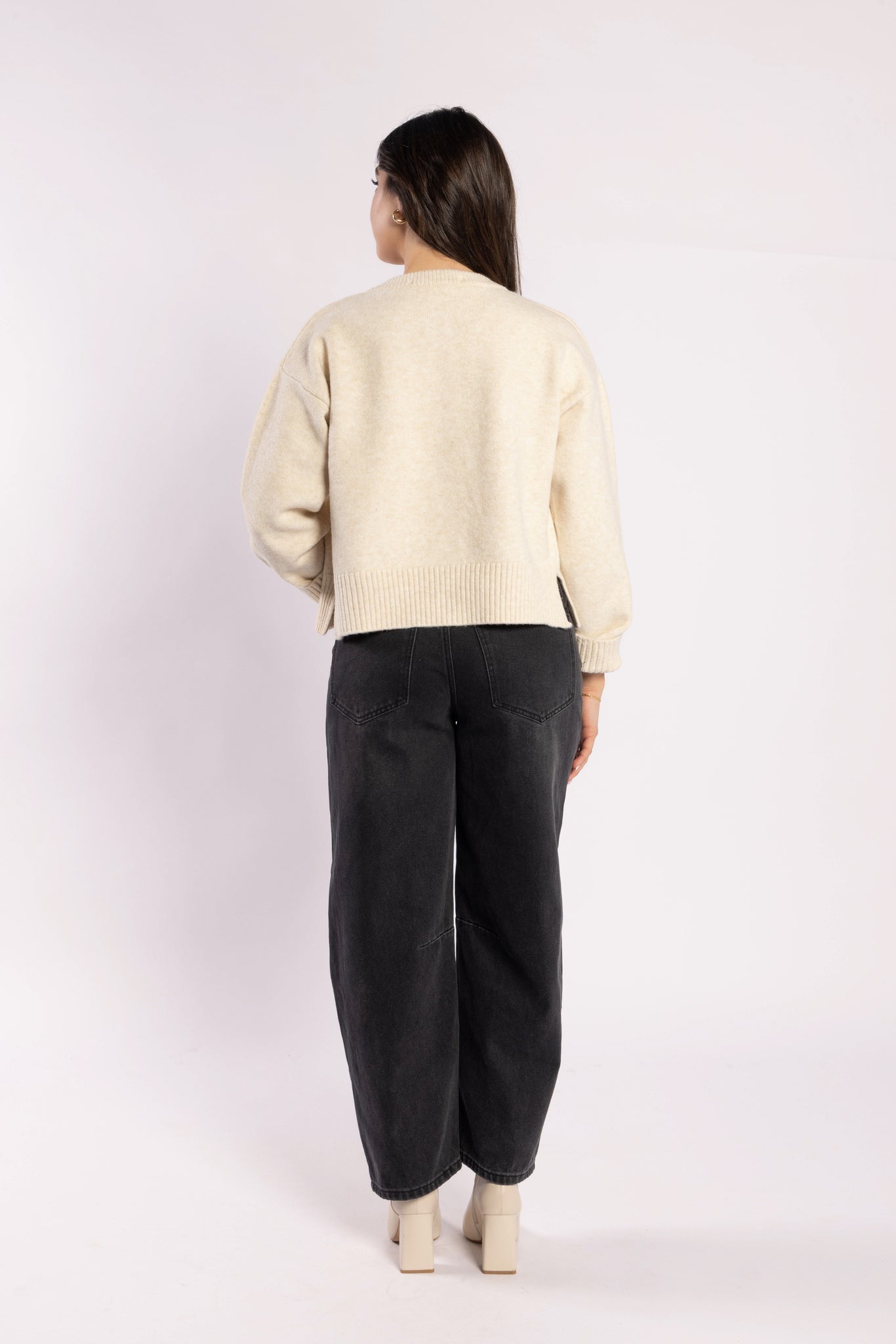 The must-have Seasons Balloon Leg Jeans from Drama the Label. These comfortable and relaxed jeans feature a zip fly, front and back pockets, and a Black wash. Elevate your wardrobe with these stylish and versatile jeans that are perfect for any season.