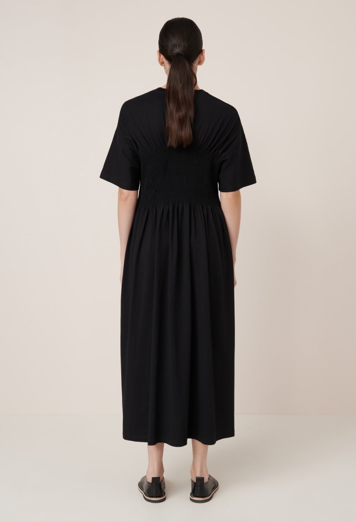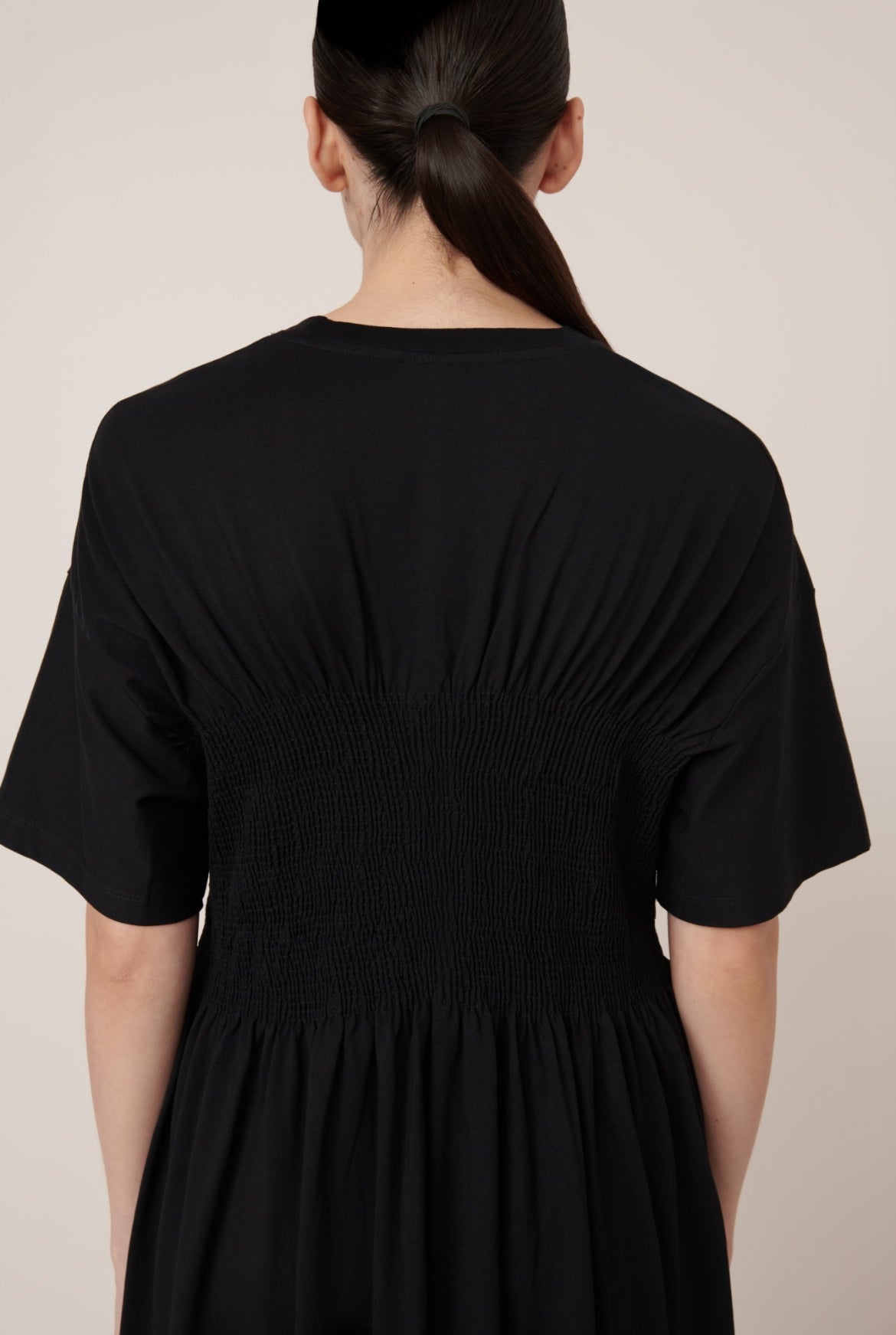 Effortlessly elegant, the Gathered Dress combines comfort with thoughtful design. Its relaxed fit, enhanced by intricate shirred detailing through the bodice, creates a flattering shape.Â