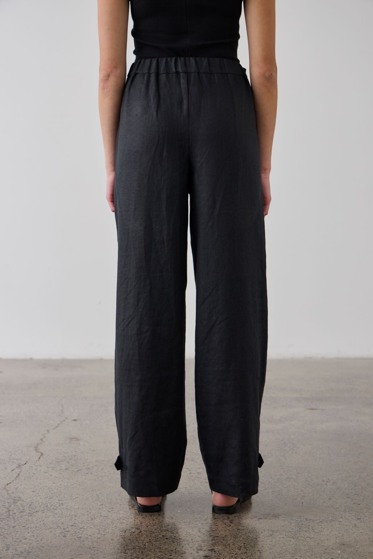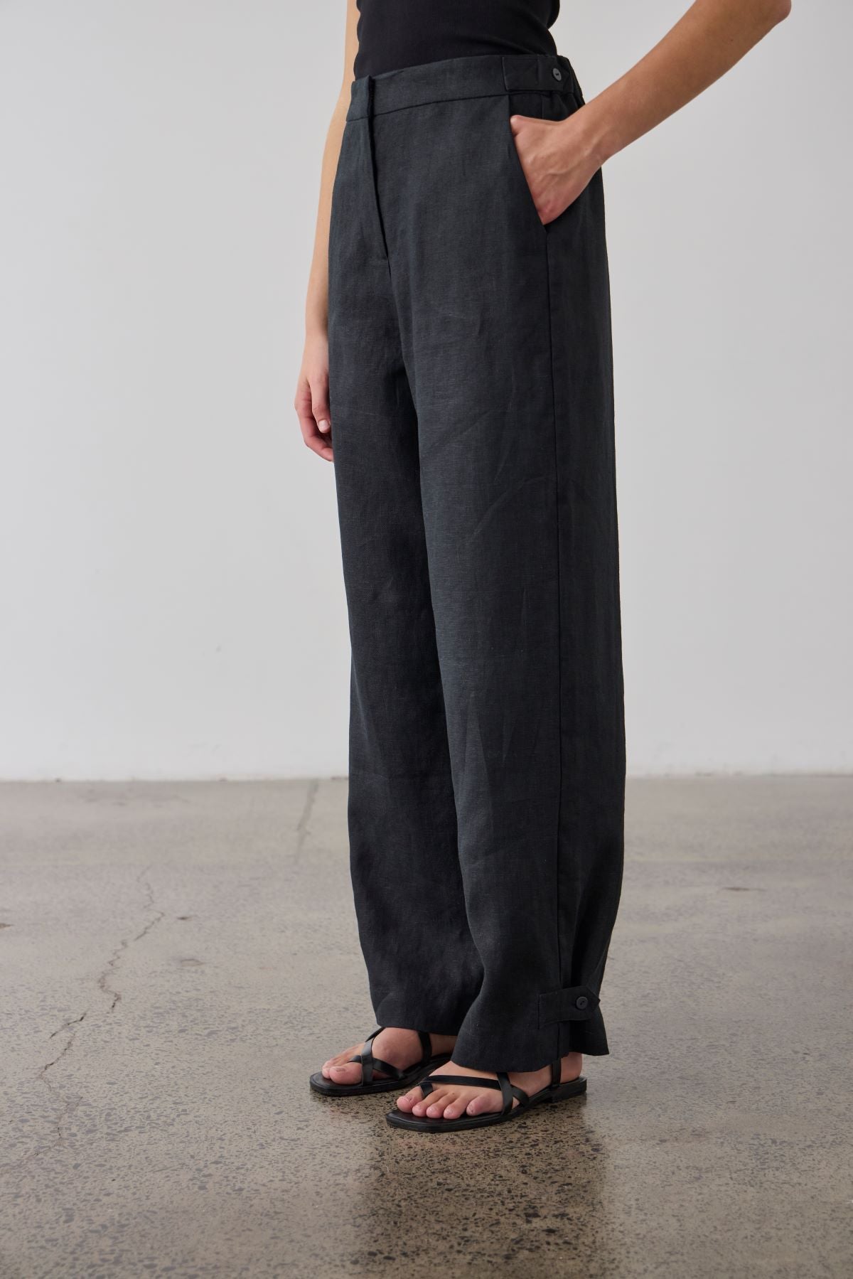 An elevated take on relaxed summer dressing. These women's linen pants are crafted from 100% breathable linen, featuring a full zip and button closure, practical pockets, and a half elastic waist for all-day comfort. Cut with a flattering straight-through wide leg, they're finished with a button tab at the hem to wear wider or button for a softly tapered silhouette.