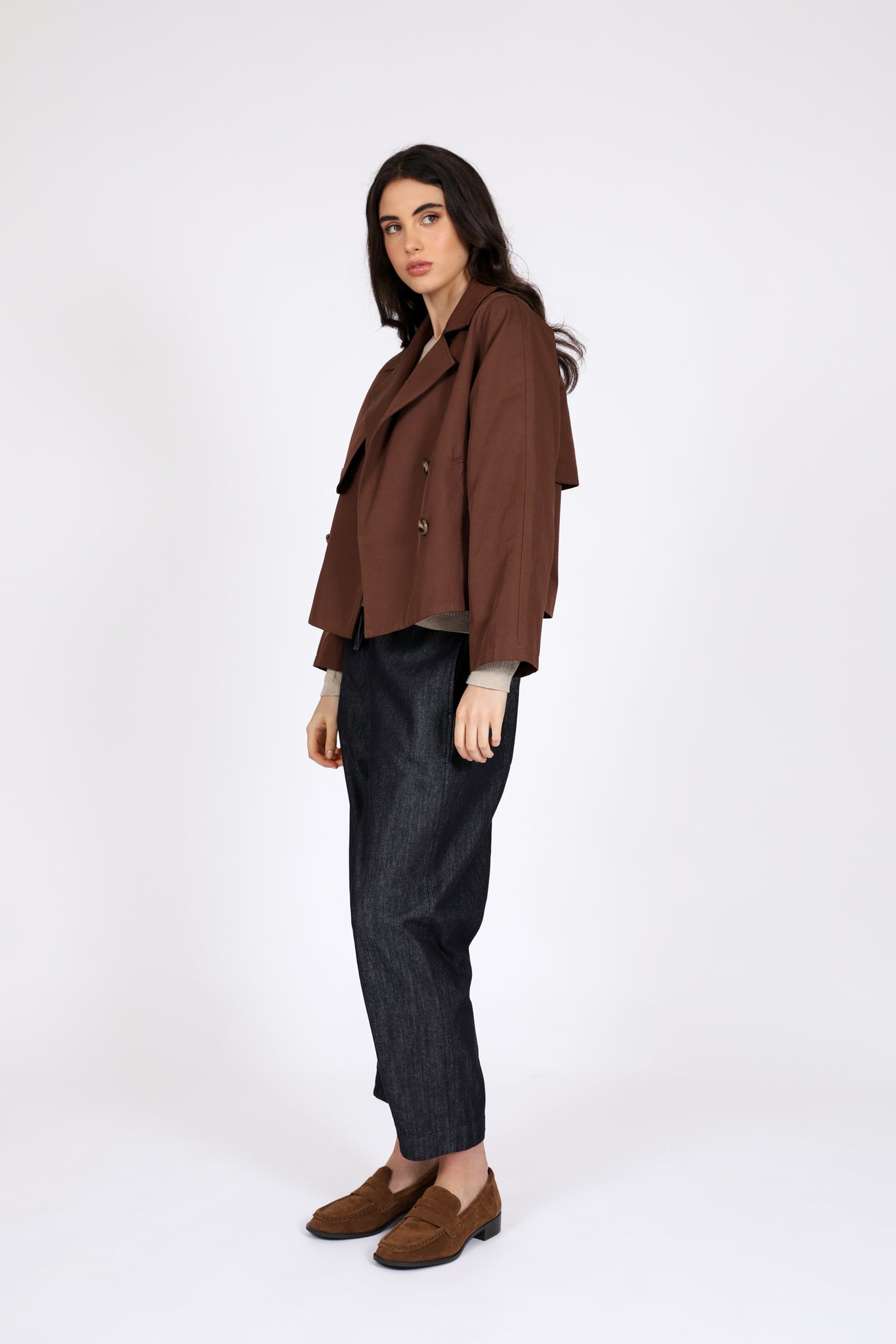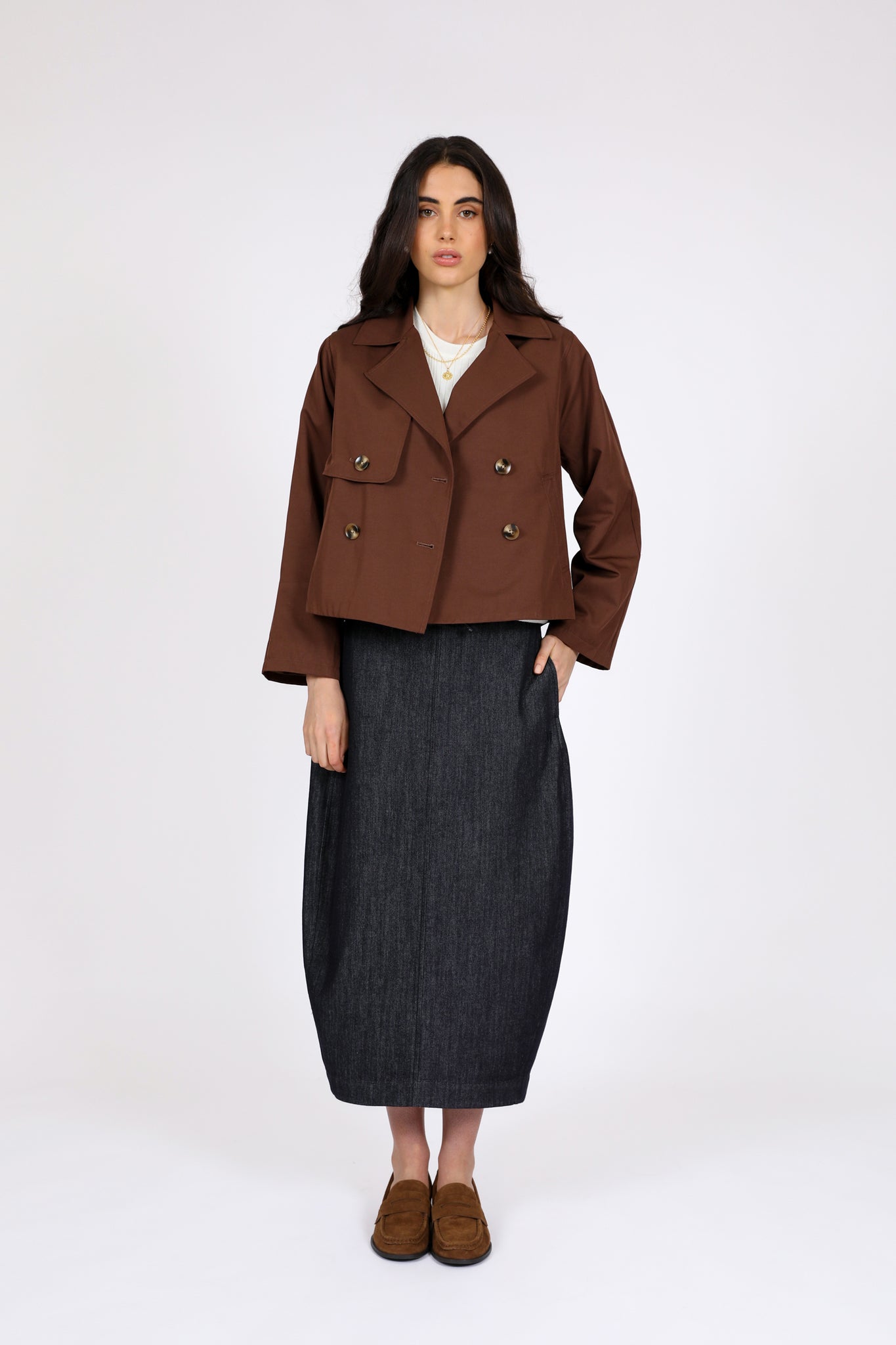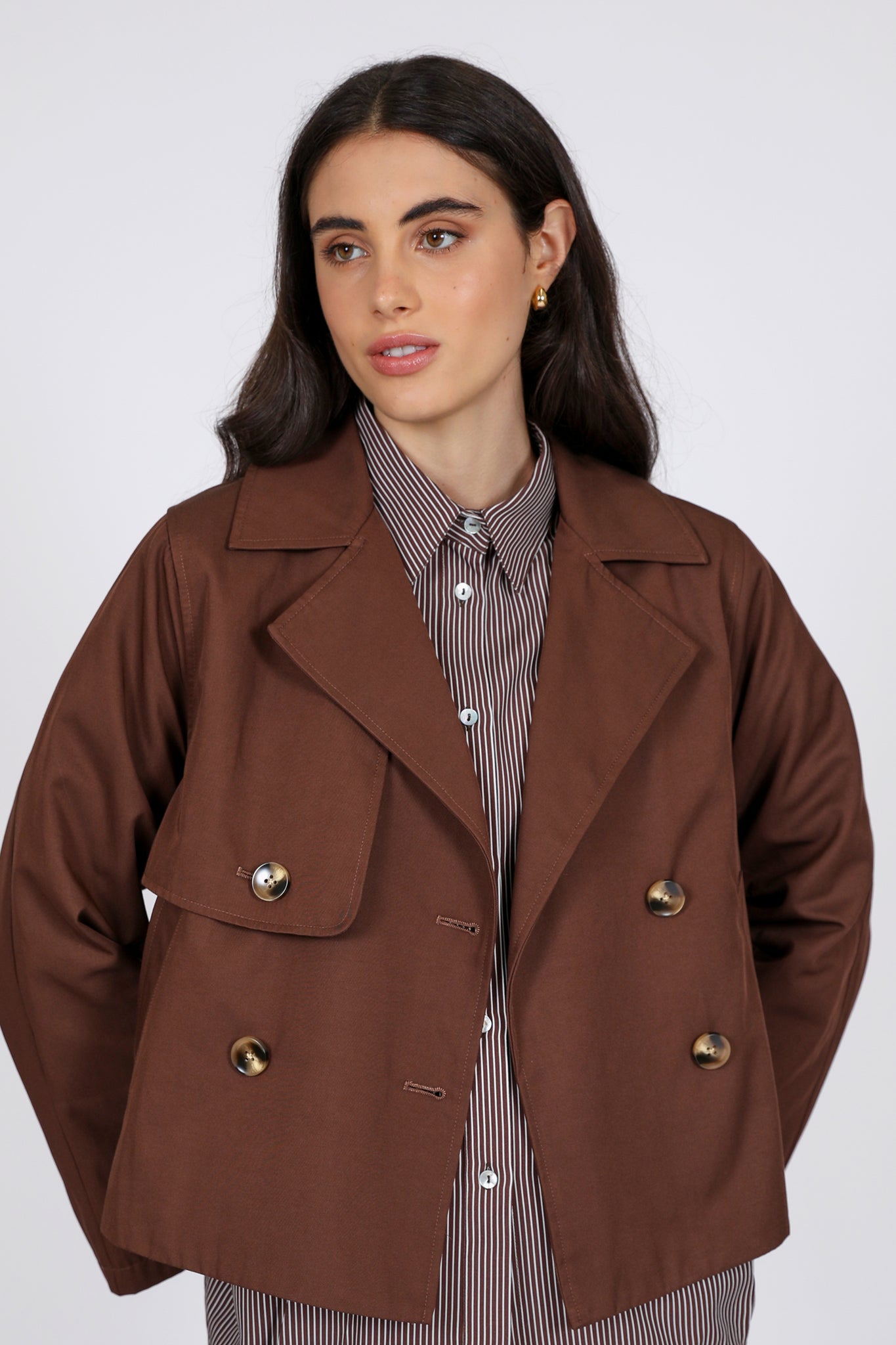 Chic and endlessly versatile, our Unity Short Trench is a timeless staple you'll wear year-round. Crafted in a cotton-blend fabric in the perfect shade of Java brown, this double-breasted jacket features a double lapel and back wind flap for function and style. With set-in sleeves and a slightly cropped length, it has a classic, structured yet relaxed fit that pairs effortlessly with both tailored and casual pieces.