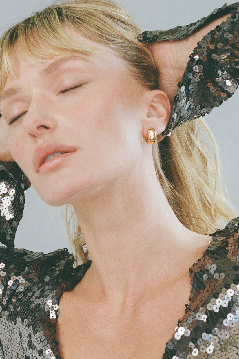 Introducing our new everyday icons, Blog Huggies. 18k gold vermeil with a sterling silver base. All Porter pieces are water-resistant, will never rust or turn green, and can be worn in the shower. Light-weight and designed for everyday wear featuring a seamless ear pin for a concealed look.