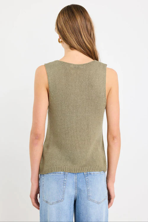 Stories Be Told Settler V Neck Sleeveless Knit Top - Khaki