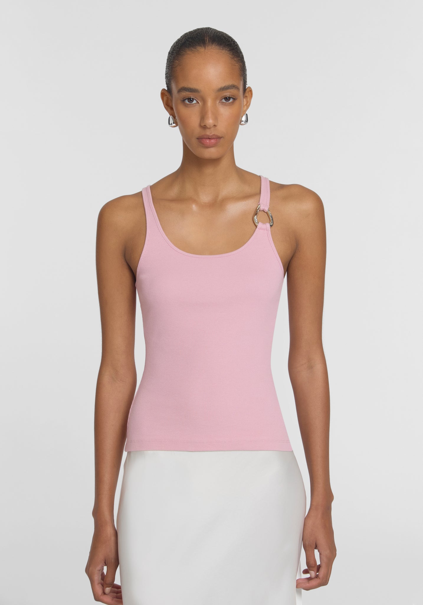 A refined wardrobe essential with a modern edge. The Viktoria & Woods Glory Tank is designed to skim the body, featuring a flattering scoop neckline and subtle branded hardware for an elevated everyday finish.