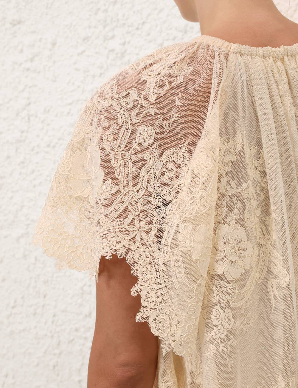 Zimmermann Luna Lace Flutter Blouse - Cream