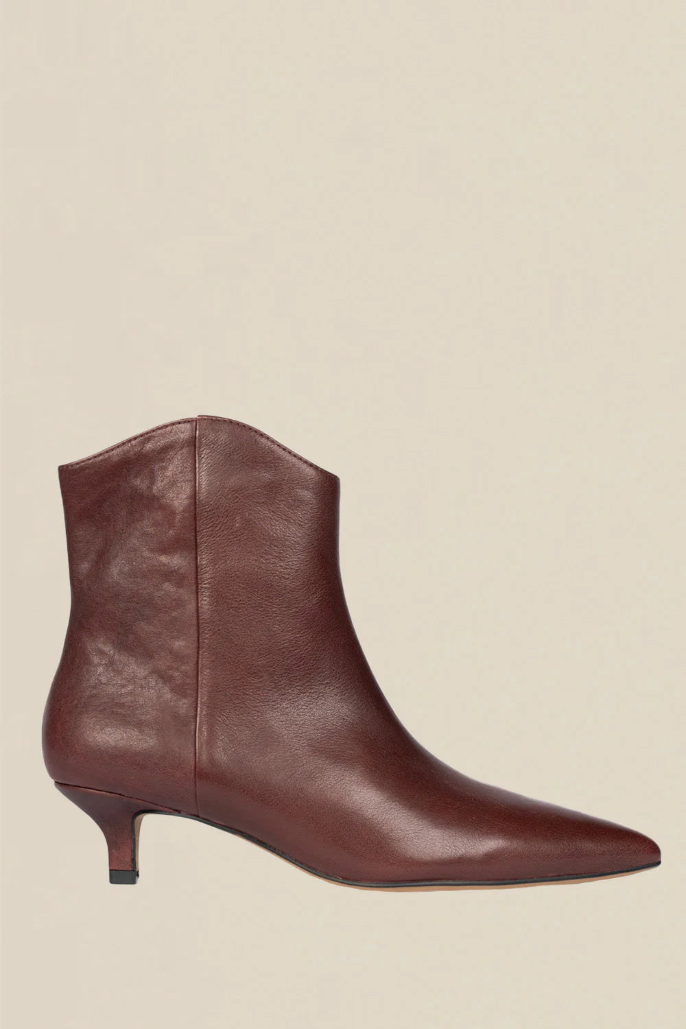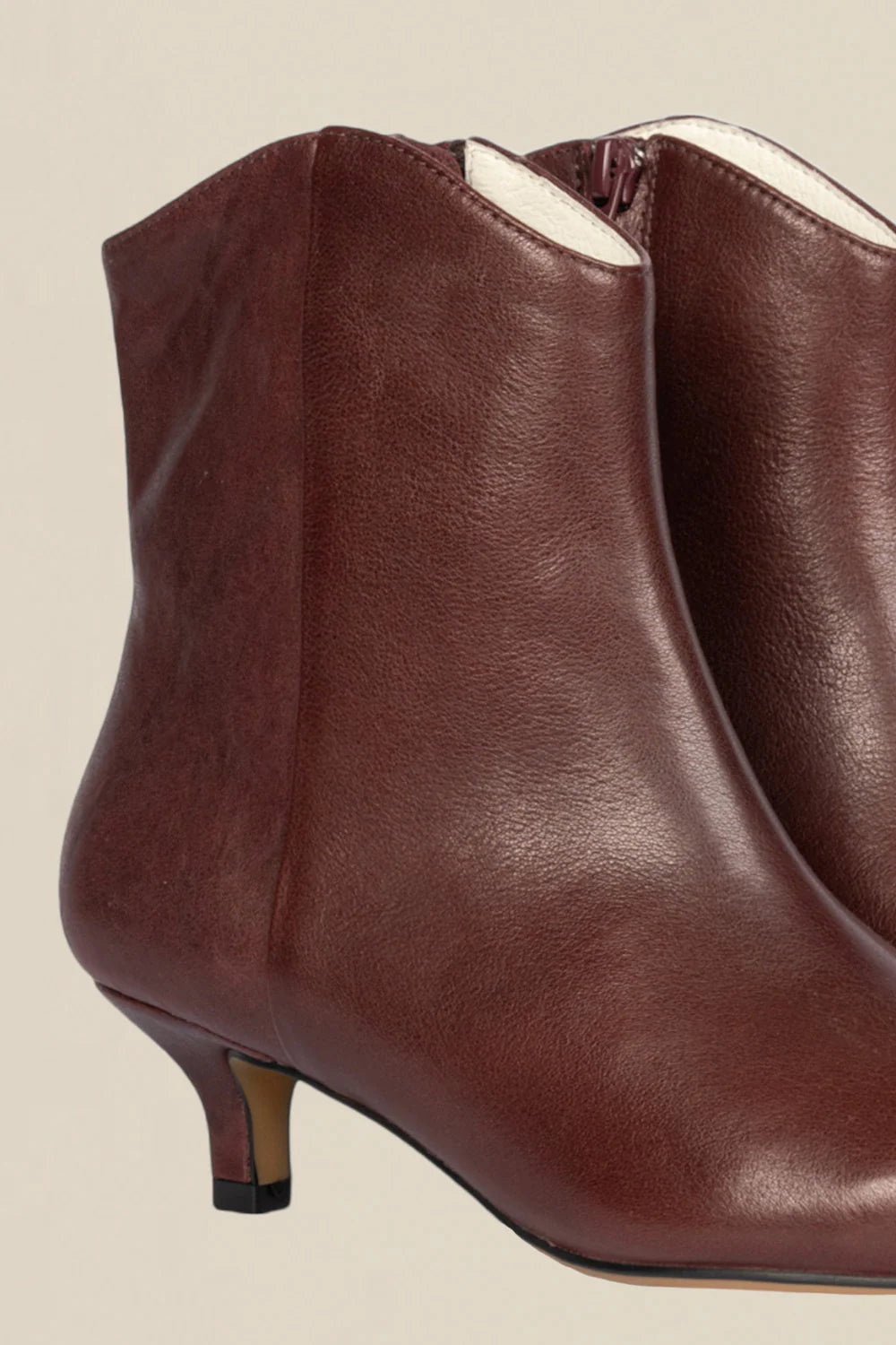 - ankle boot set on a subtle kitten heel for ease and wearability