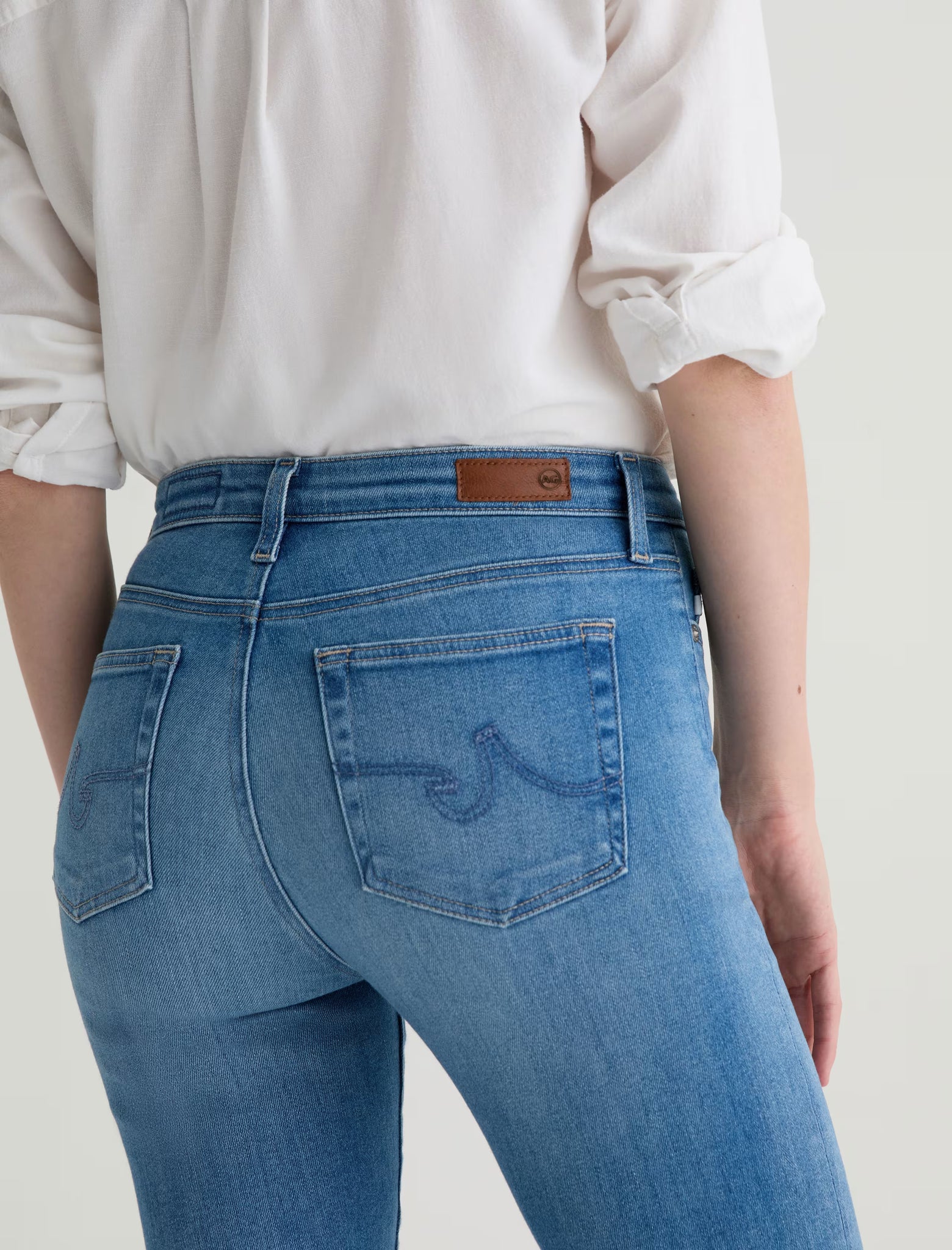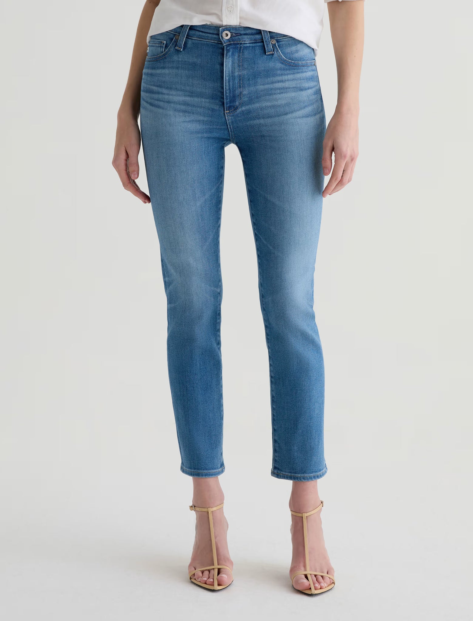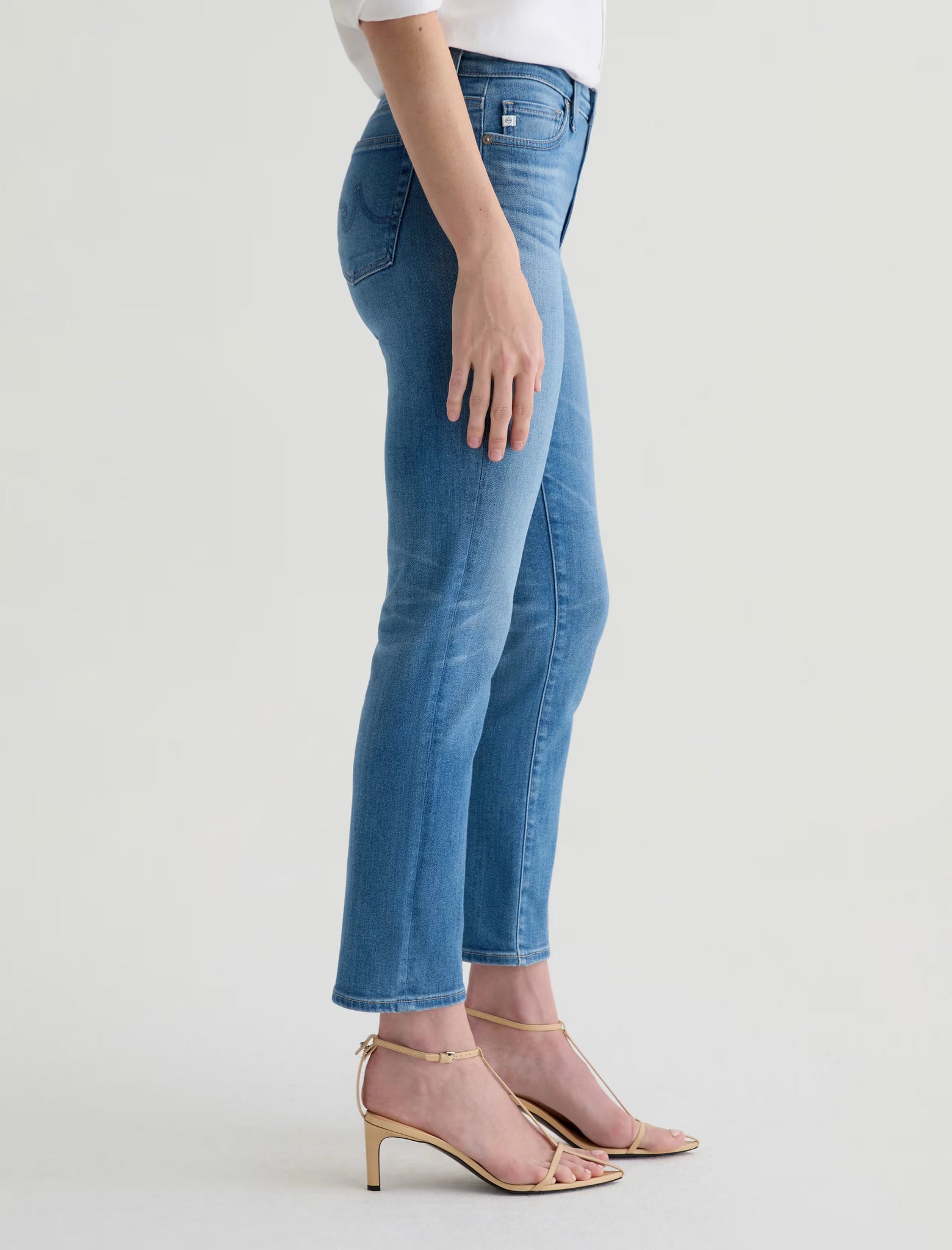The Prima Ankle is a mid-rise cigarette jean with a fitted silhouette through the hips and slight tapering down the legs. Cropped just above the ankle, this five-pocket style is crafted from 12.5 oz. Vintage Indigo Stretch Denim for a comfortable, flexible fit. It comes in a light wash with subtle fading for a broken-in look.