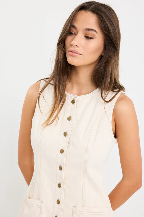 Among The Brave Avenue Denim Mini Vest Dress - Ecru Arriving Thursday