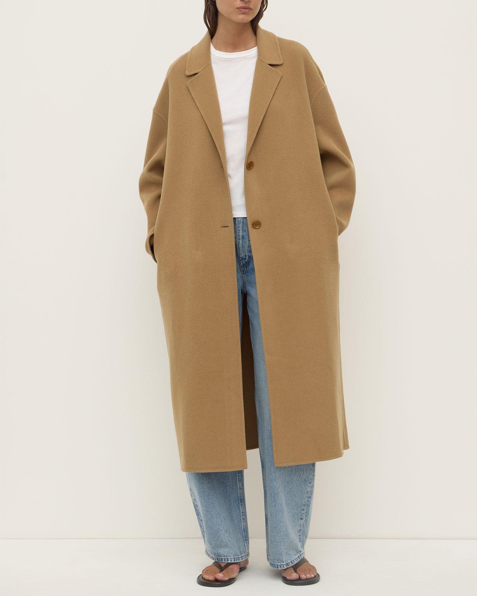The Jenna Wool Jacket in black is a 100% wool longline jacket with an oversized fit and dropped shoulders.