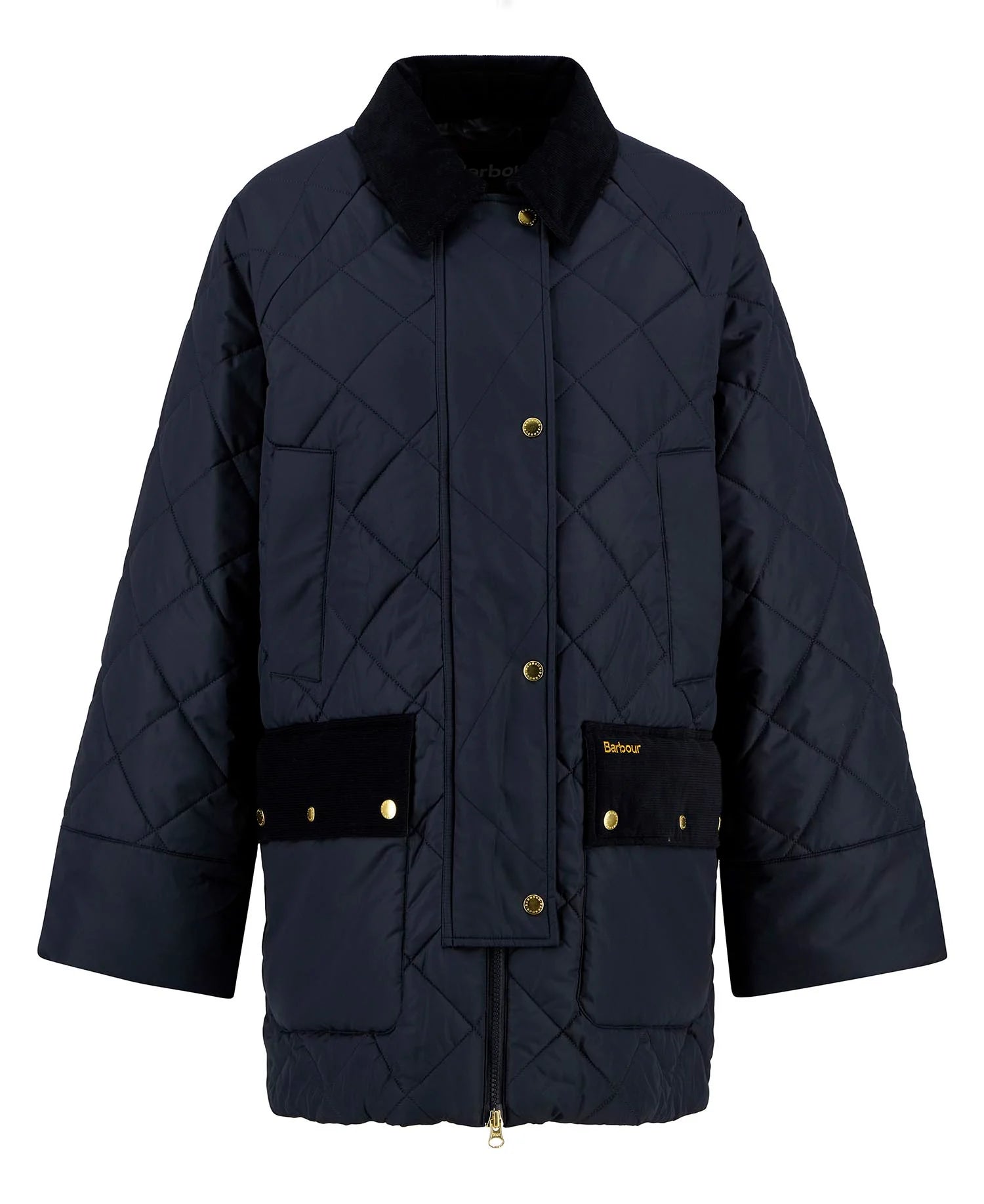 The Barbour Aldburgh Quilted Jacket is a chic and practical addition to your wardrobe. Its 3-inch box quilted design pairs stylishly with unquilted pockets and cuff panels, while zig-zag stitching on the placket adds subtle detail. Featuring bright brass hardware, a needlecord collar, and tartan buggy lining, this jacket delivers refined warmth.