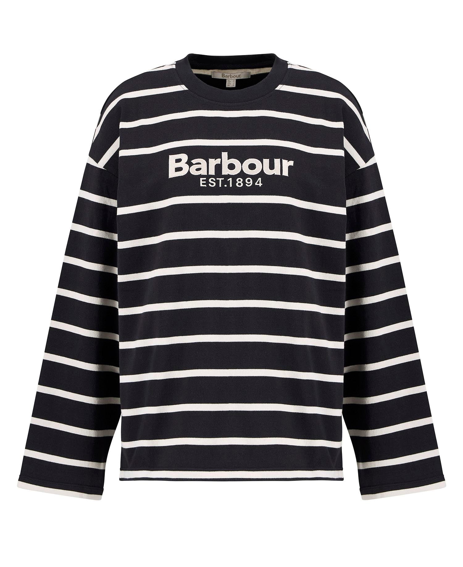 The Barbour Maeve Long-Sleeved Striped Top is crafted from 100% cotton for all-day comfort and style. Designed with a step hem and side splits, it offers a modern silhouette and relaxed fit. Featuring new Barbour embroidery on the centre front chest and a slim metal ID bar at the back neck.
