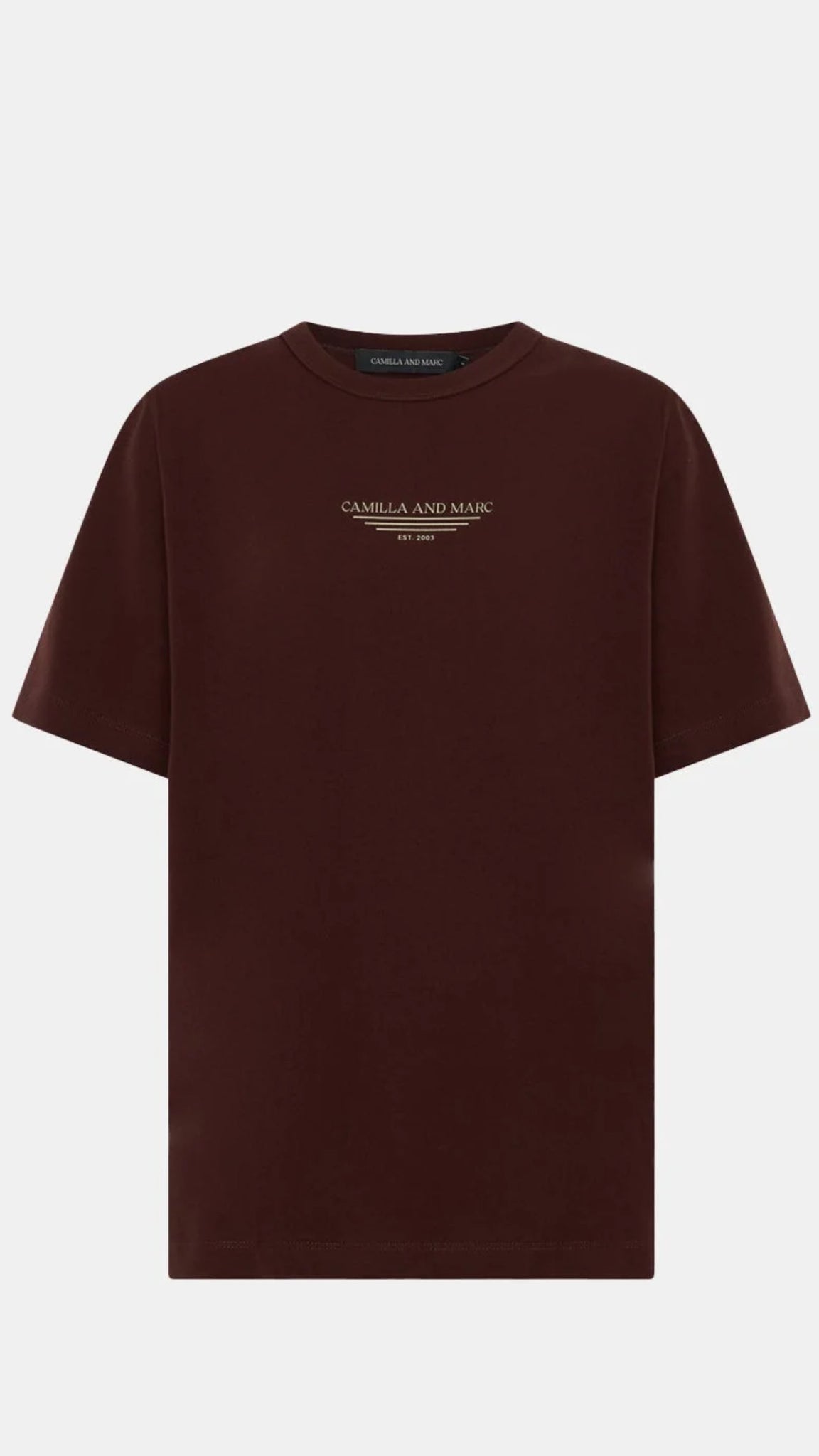 CAMILLA AND MARC Janice Logo Tee Shirt in Chocolate Brown.