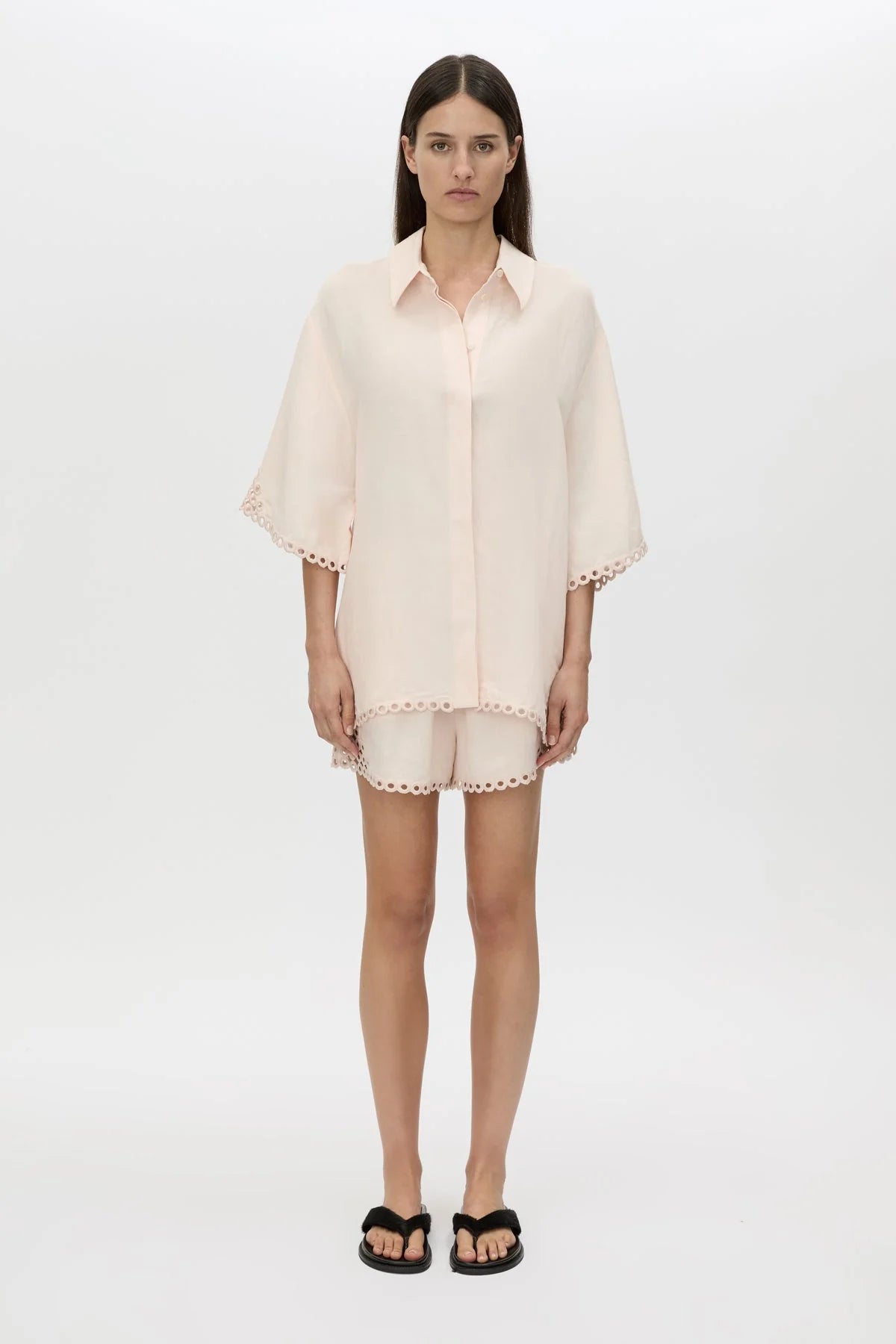 CAMILLA AND MARC Lolani Embroidered Shirt in Soft Pink.