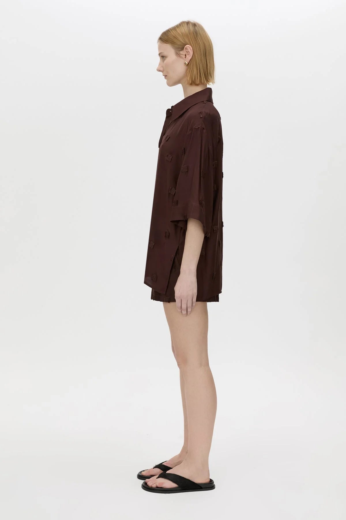 CAMILLA AND MARC Ottilie 2.0 Embroidered Short in Chocolate Brown.