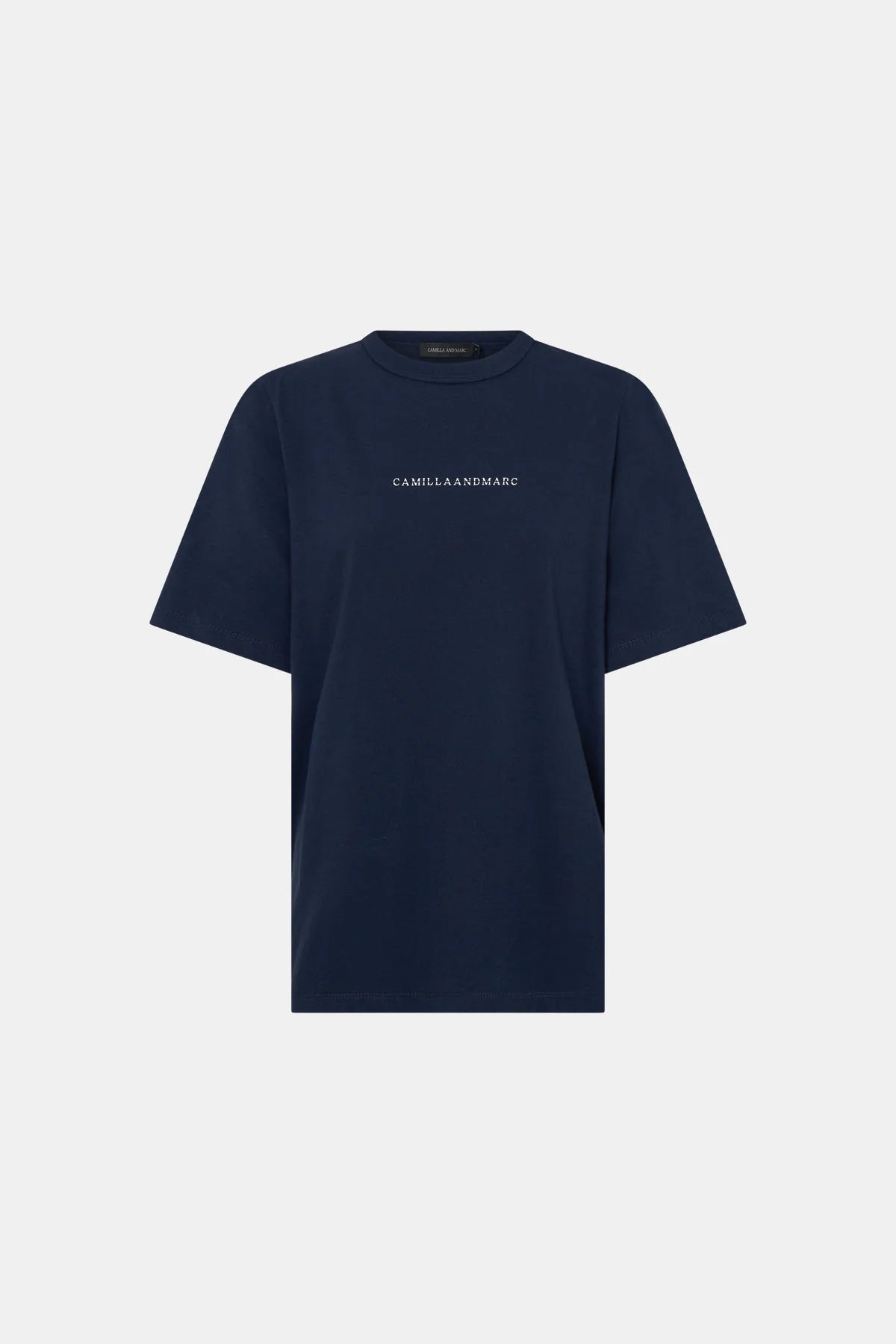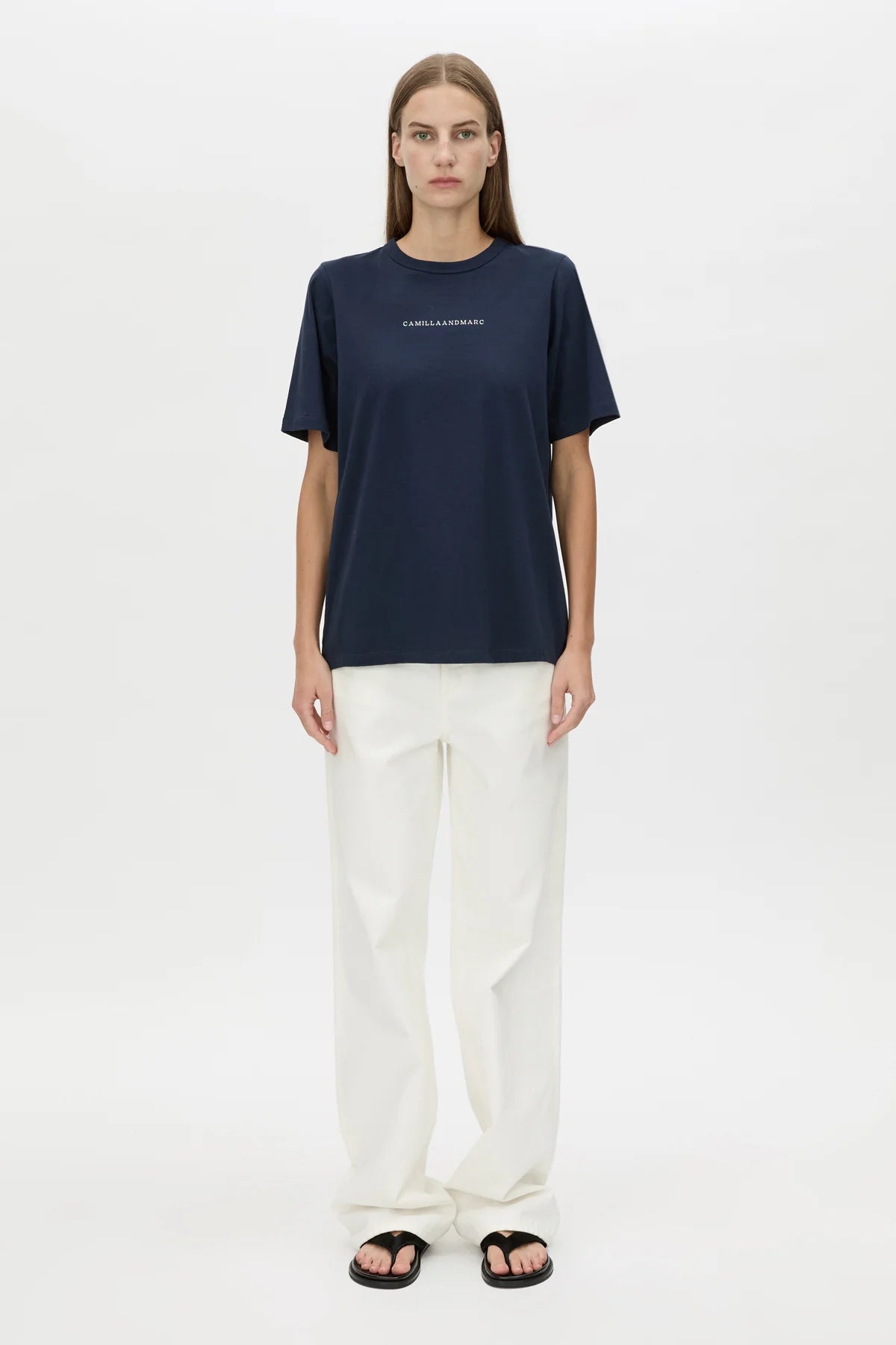 CAMILLA AND MARC Suvero relaxed printed white cotton t-shirt with a centre front contrast logo.