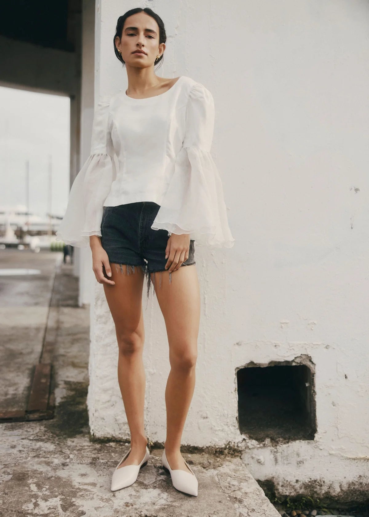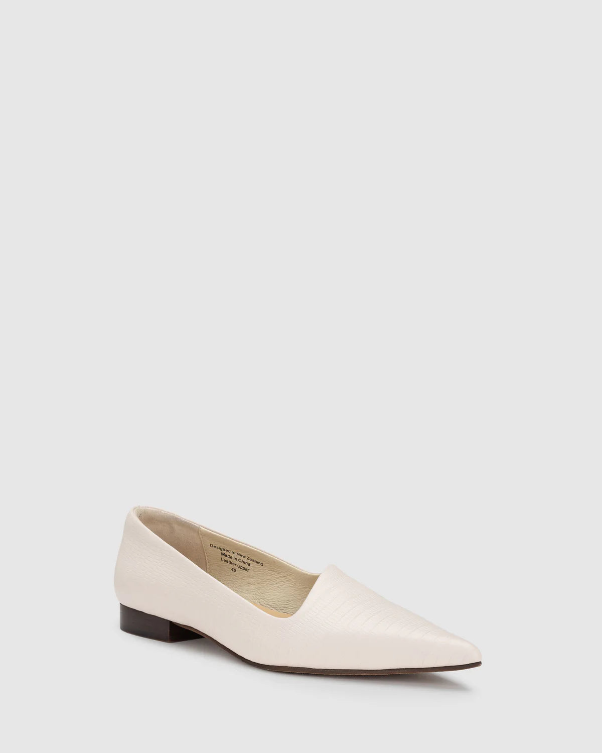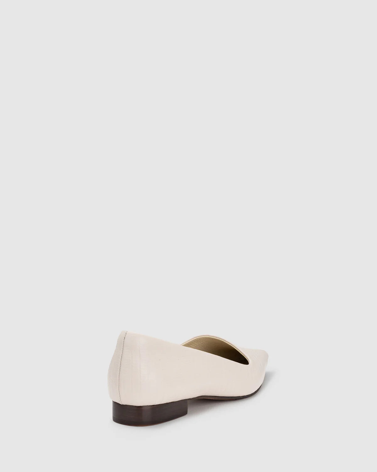 The DYNASTY FLAT in Oyster combines embossed detailing with a soft neutral tone for a fresh take on a pointed toe flat. The angled upper and low heel make it a versatile style to wear from workday to dinner.