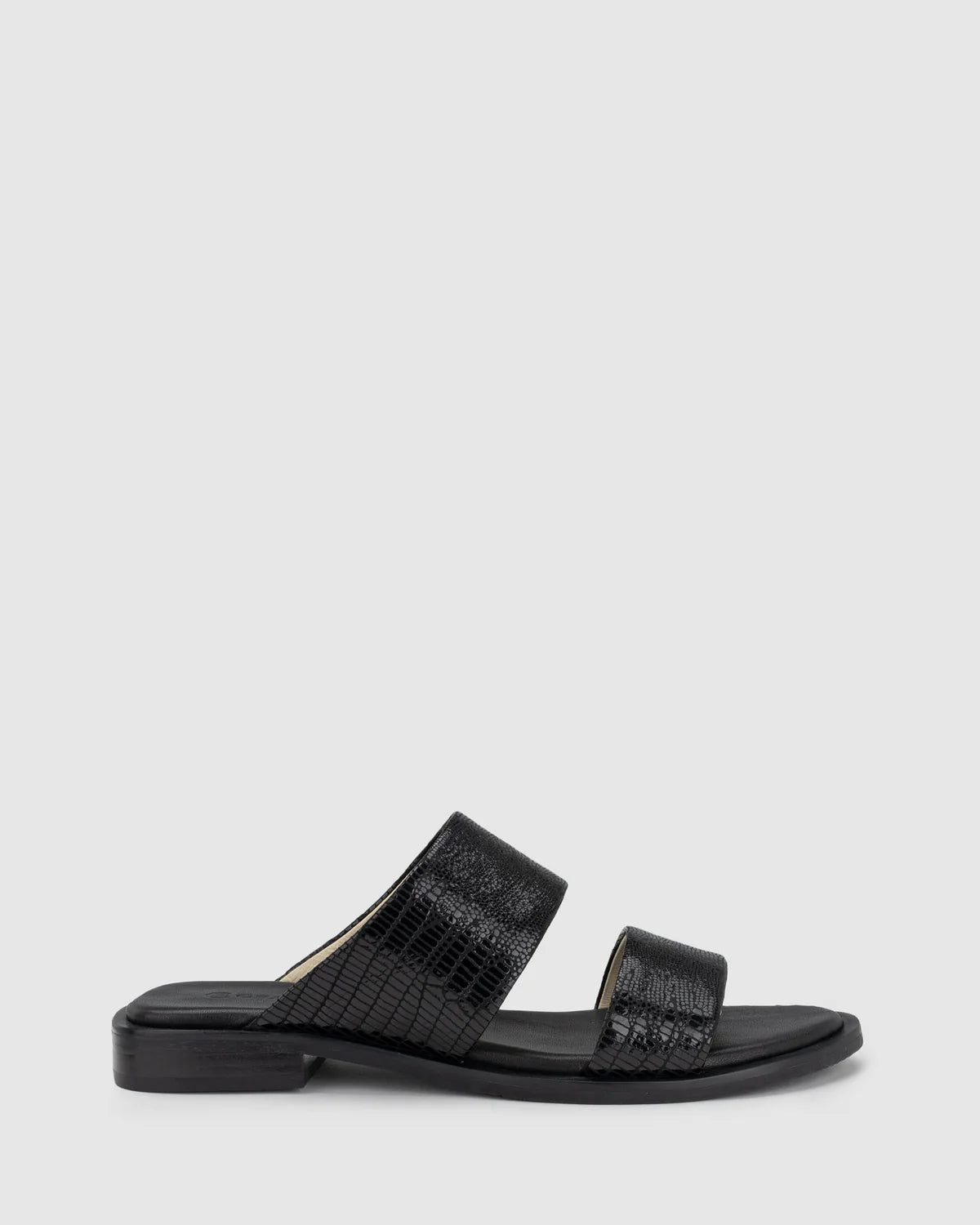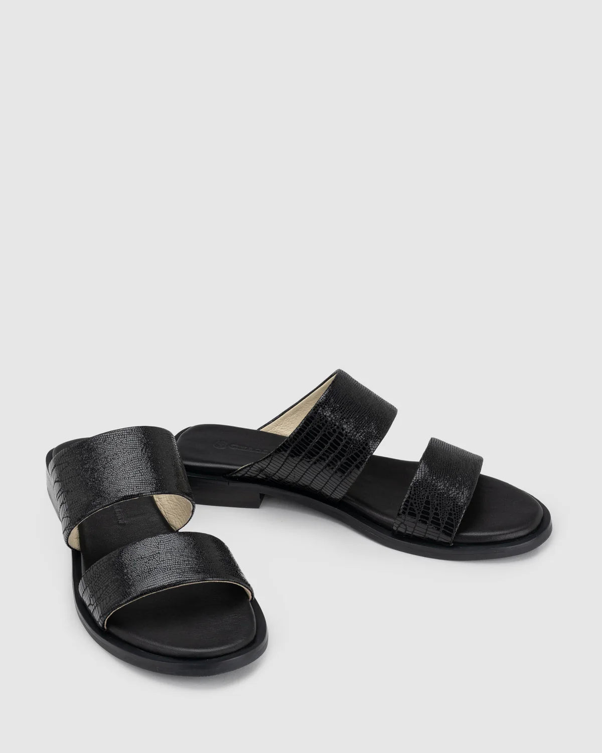 The WAVE SLIDE in Black Snake features a subtle embossed texture that adds interest to its minimalist form. Designed as a go-to flat leather slide, it’s ideal for everyday wear — clean, easy, and comfortable from the ground up.