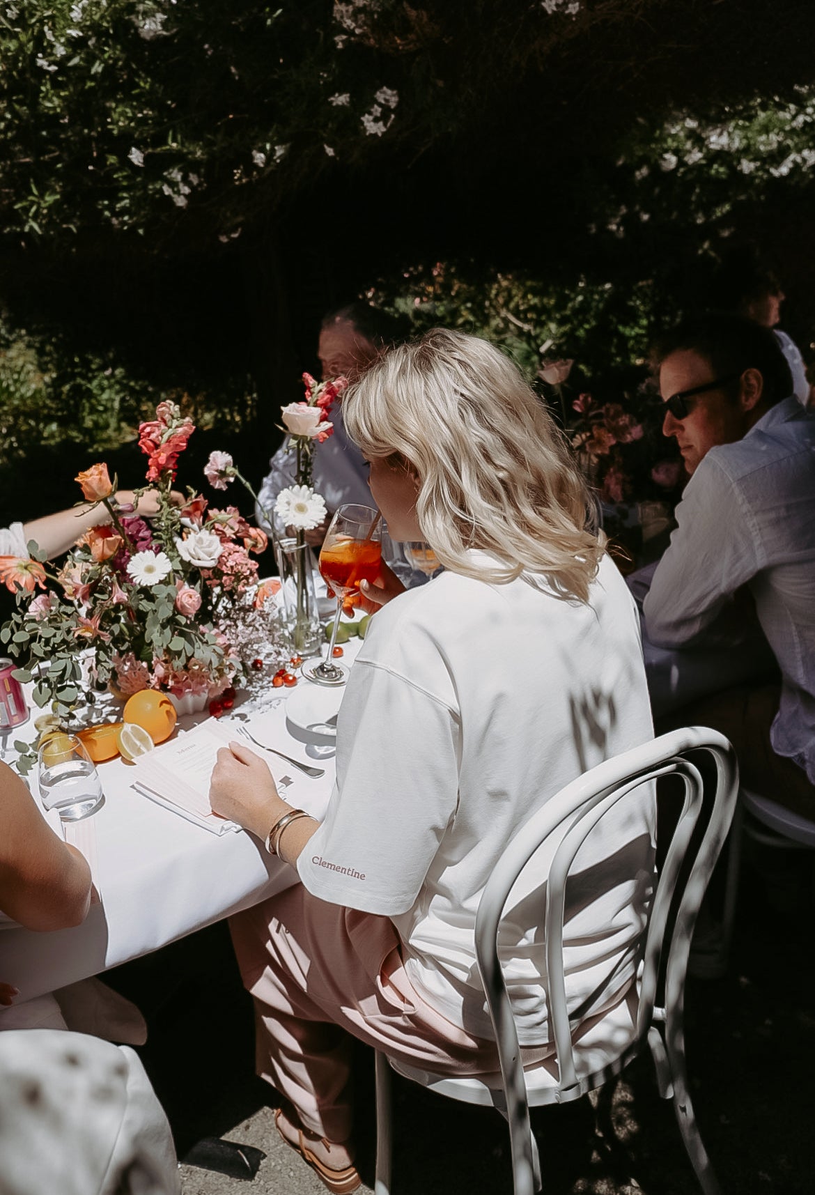 A subtle touch of branding sits on the back of the sleeve, with Clementine delicately embroidered in Pink for a refined, signature finish.