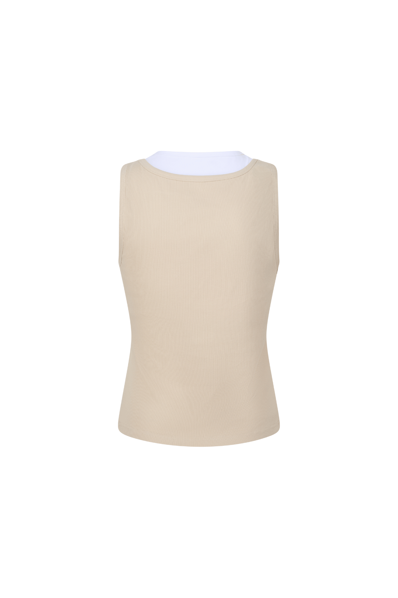 A refined take on the everyday tank. Featuring a layered two-tone finish in sand and white, the Millie offers subtle dimension and an elevated base for summer dressing.