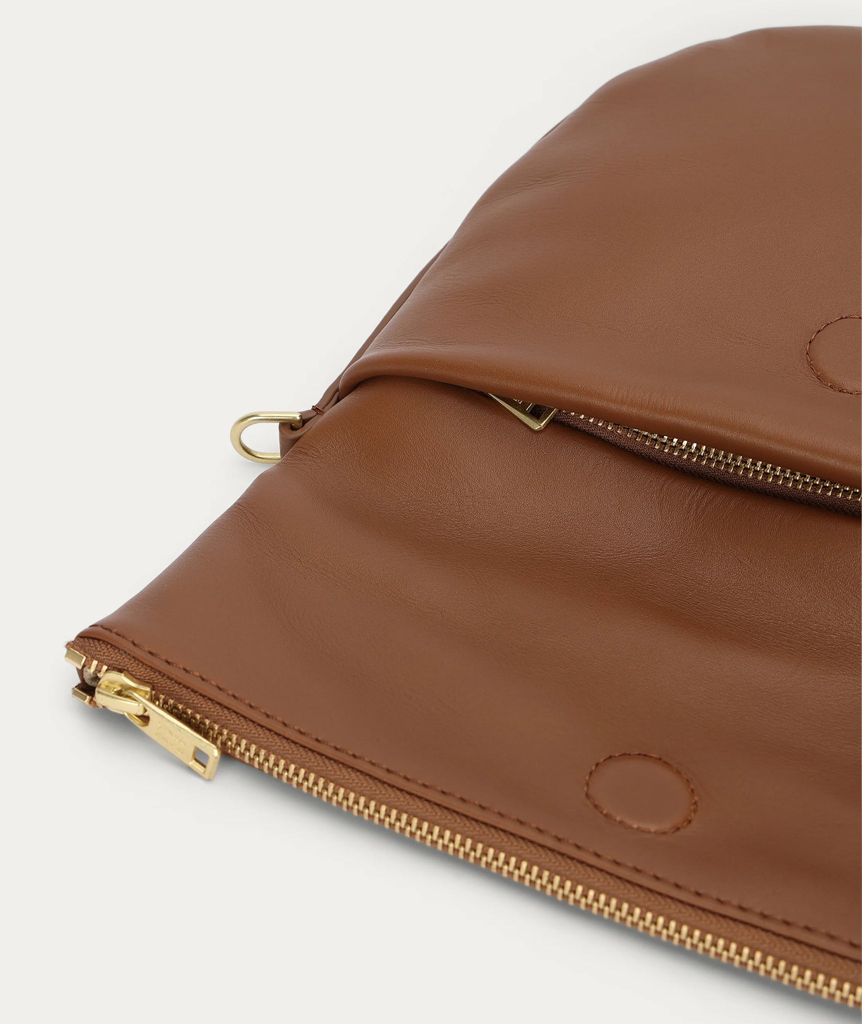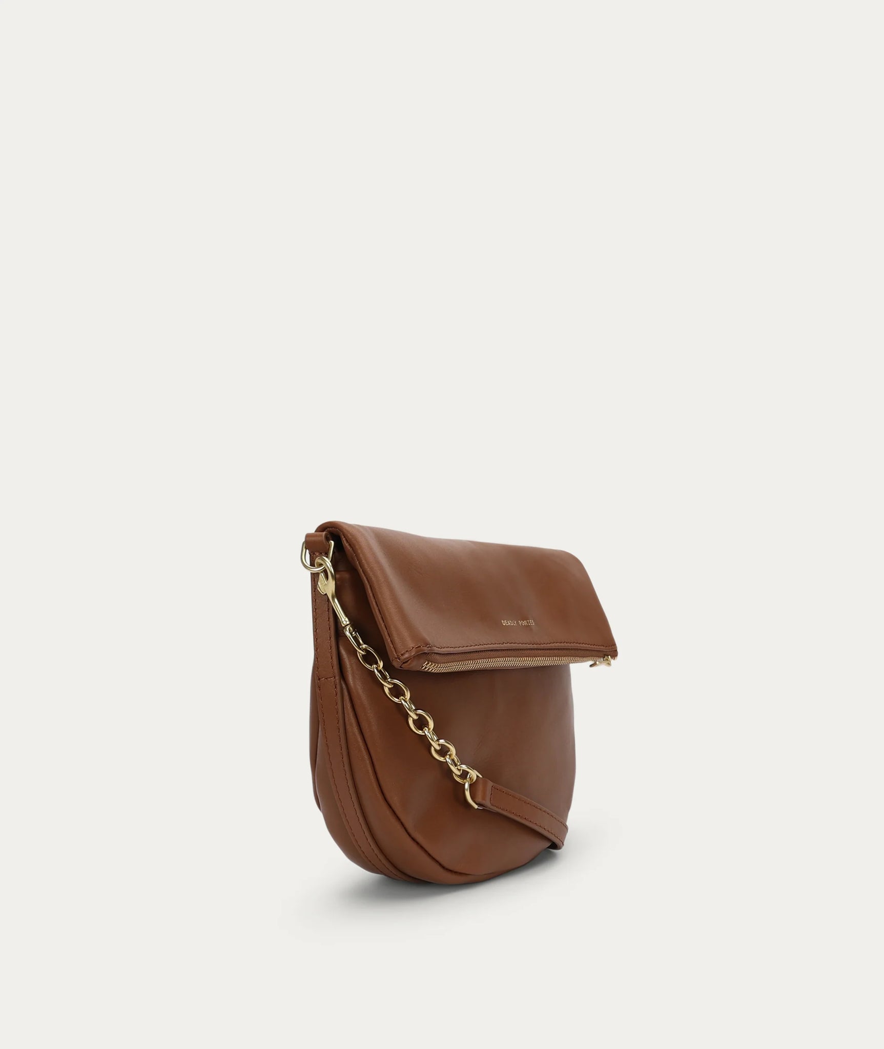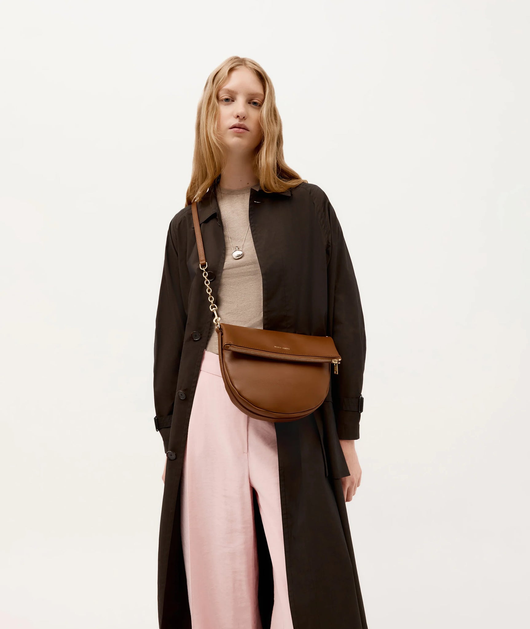 Buttery Ironed Calf Nappa shapes the slimline Mr Mini Leopard in Driftwood. Designed to fold and adapt, he features a detachable, adjustable strap with chain extension and an internal zip pocket. Finished with signature brass hardware, he offers effortless versatility.