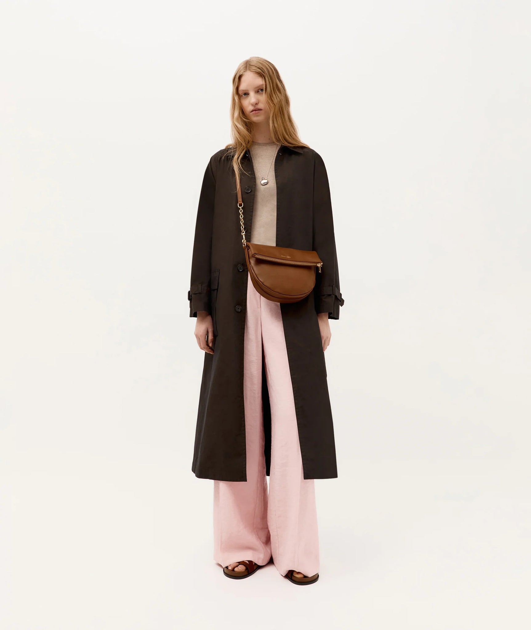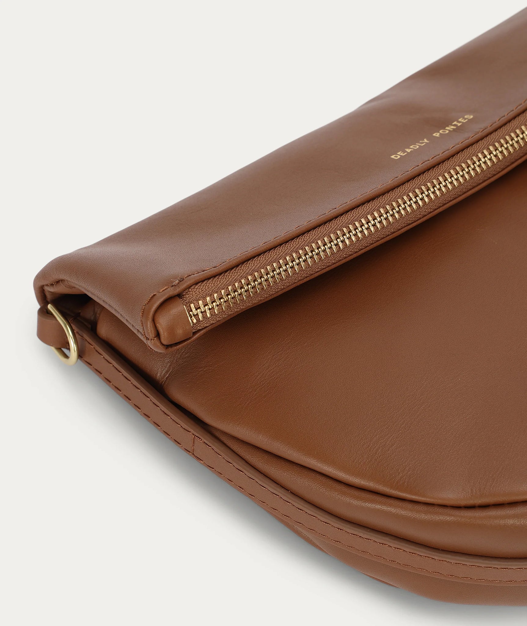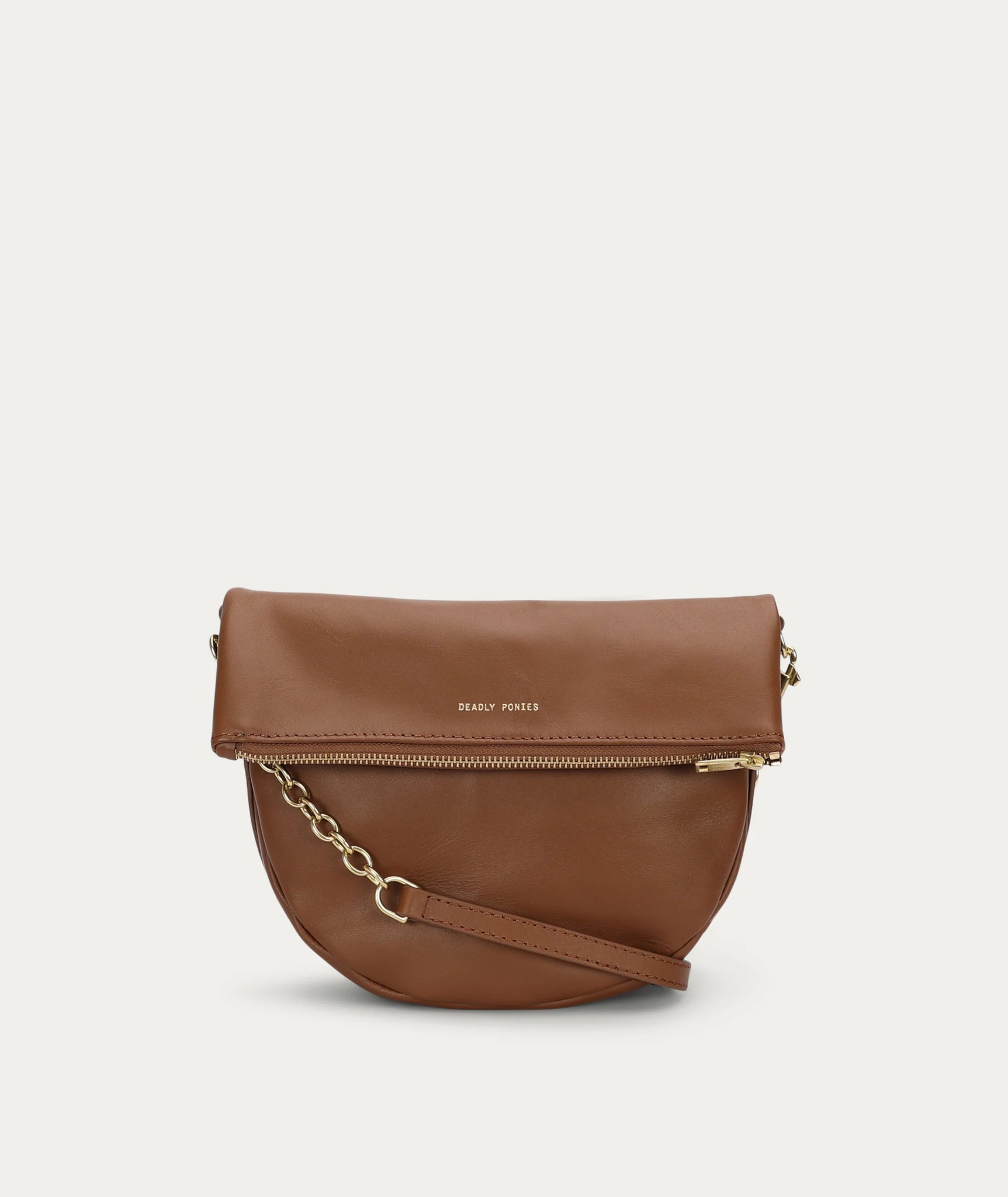 Buttery Ironed Calf Nappa shapes the slimline Mr Mini Leopard in Driftwood. Designed to fold and adapt, he features a detachable, adjustable strap with chain extension and an internal zip pocket. Finished with signature brass hardware, he offers effortless versatility.