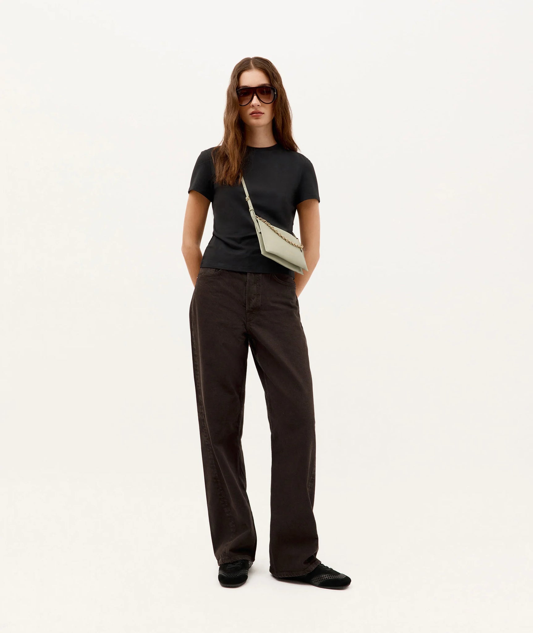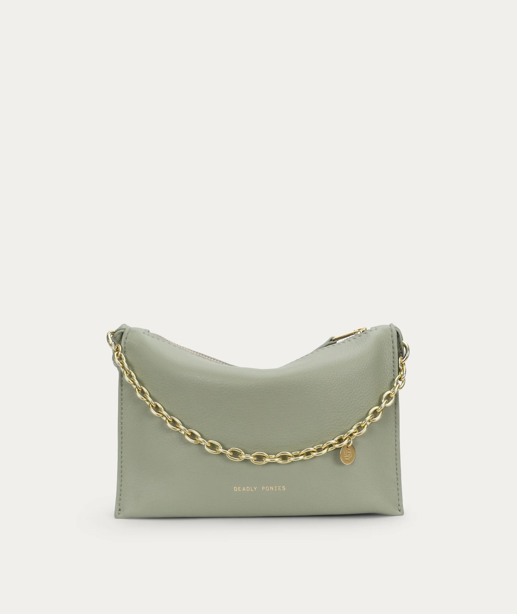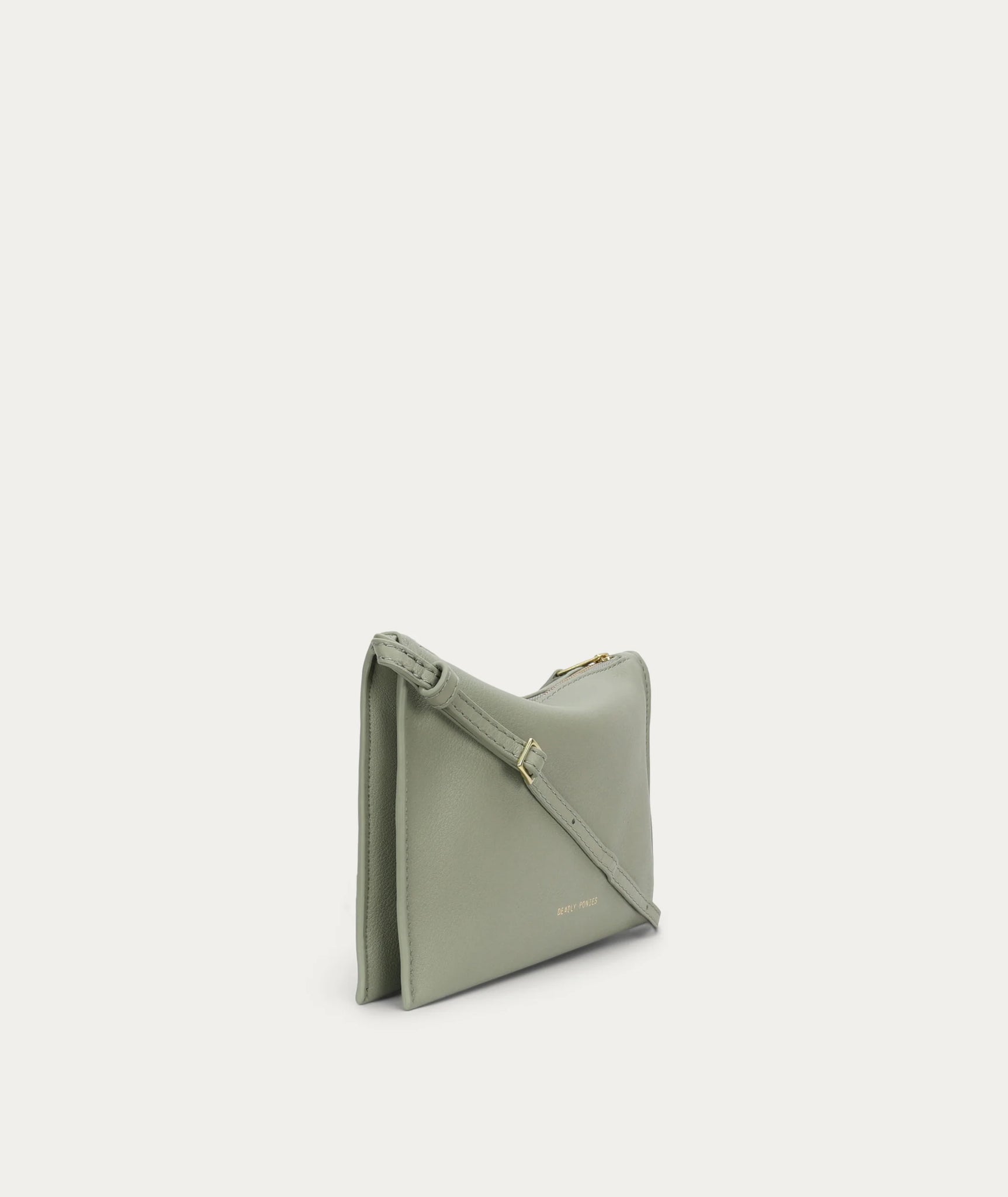 Mr Minimese is a lightweight, compact double-gusset clutch, crafted from a single piece of buttery Calf Nappa in Kina. His folded construction creates a streamlined silhouette, while a fixed adjustable strap allows him to be worn crossbody or on the shoulder.