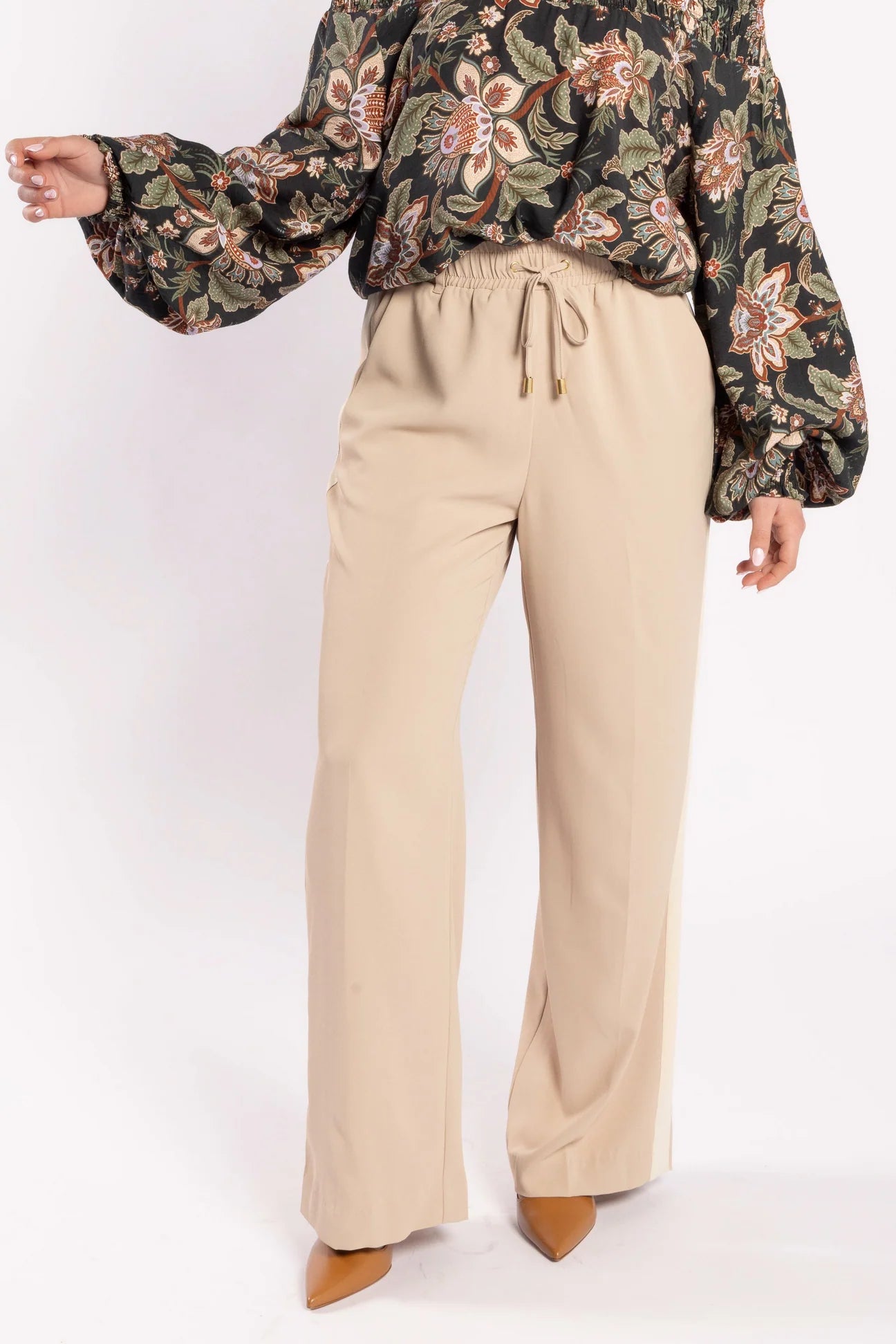 The effortlessly stylish and versatile Lake Pant is back in Tan/Beige - the ultimate wardrobe staple. Boasting a wide leg design, this pant offers both comfort and sophistication. It's elastic waist, complete with a cord tie, ensures a perfect fit for all body types. Additionally, the inclusion of pockets adds a practical touch to this timeless piece.