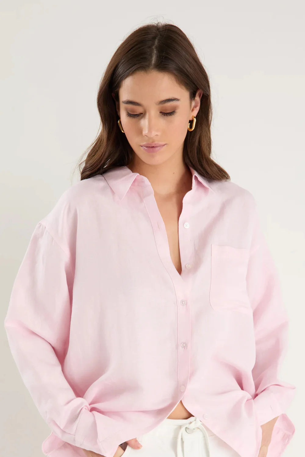 Exalted Pale Pink Linen Viscose Oversized Shirt - Pale Pink