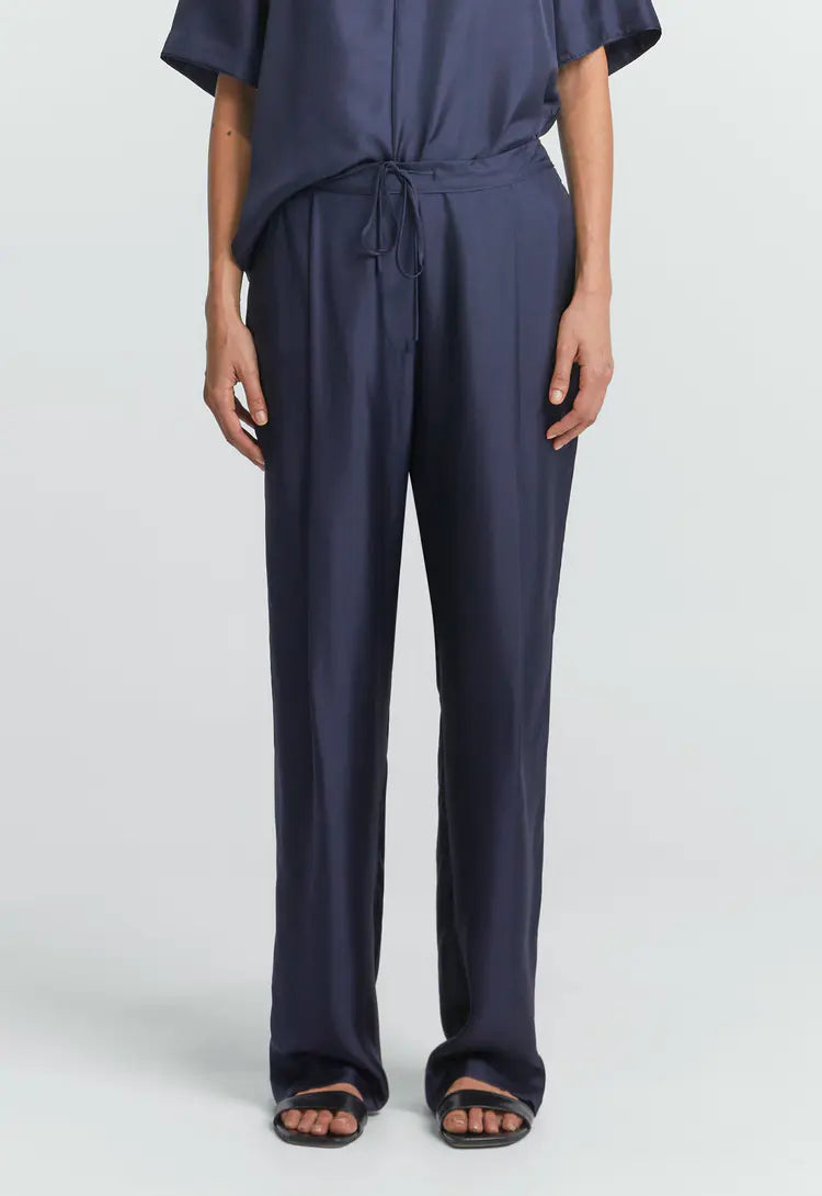 Timeless elegance. This straight leg silk pant will take you from the office to evening with ease. With a fitted waistband and elastic back for comfort they are cut from a lightweight silk twill for lustrous hand feel and a graceful drape.