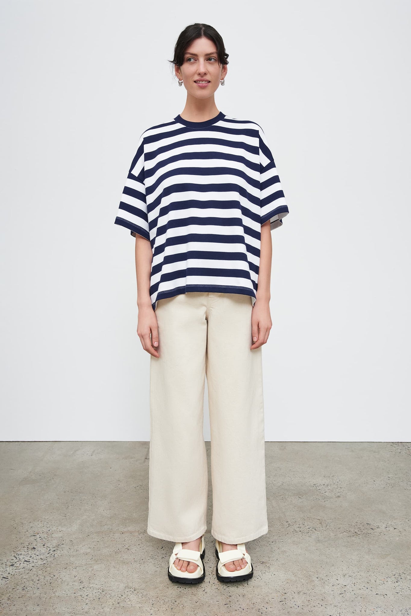 Kowtow Oversized Boxy Tee - Navy White Stripe Shirts & Tops Kowtow