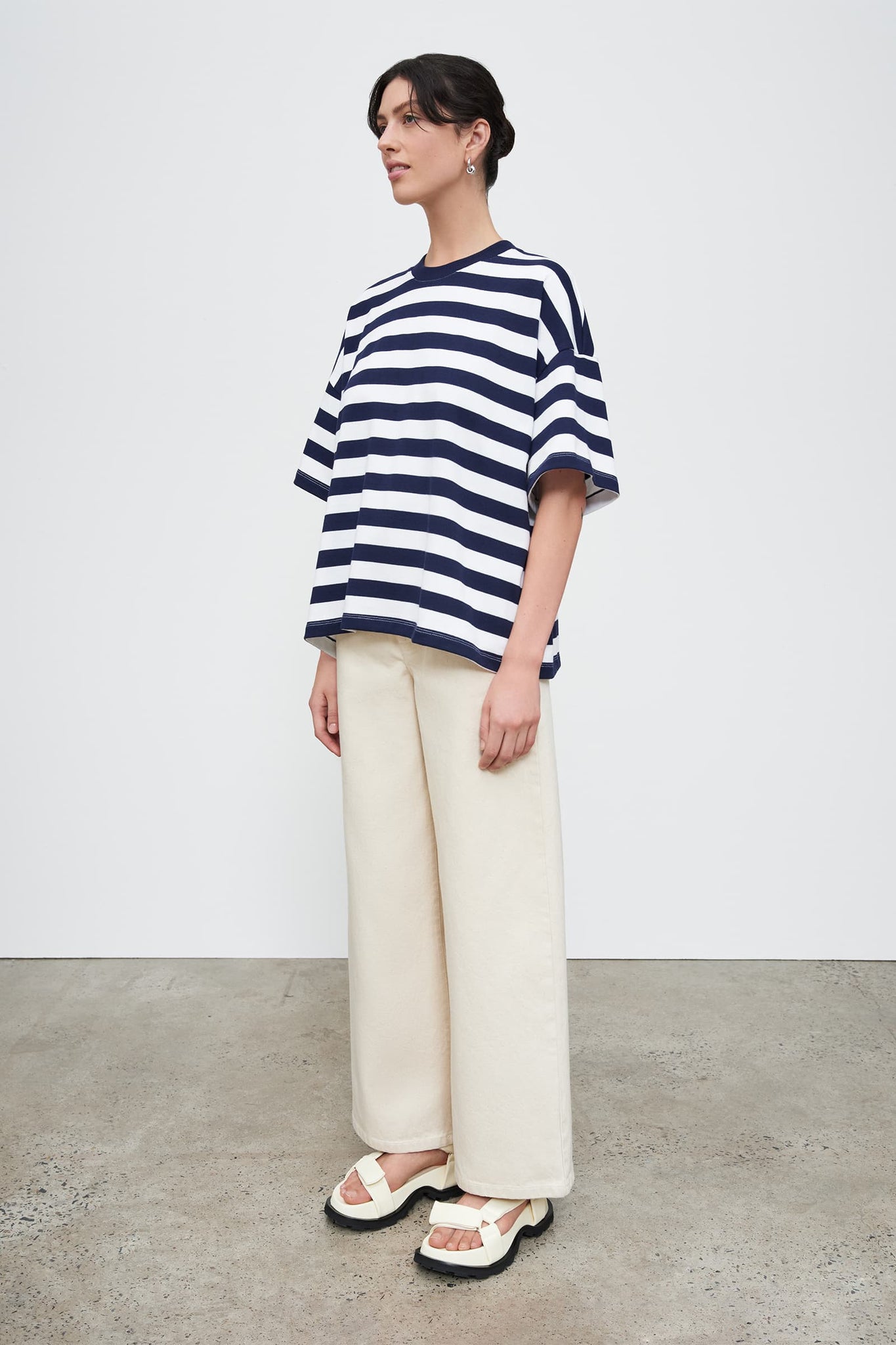 Kowtow Oversized Boxy Tee - White Navy Stripe