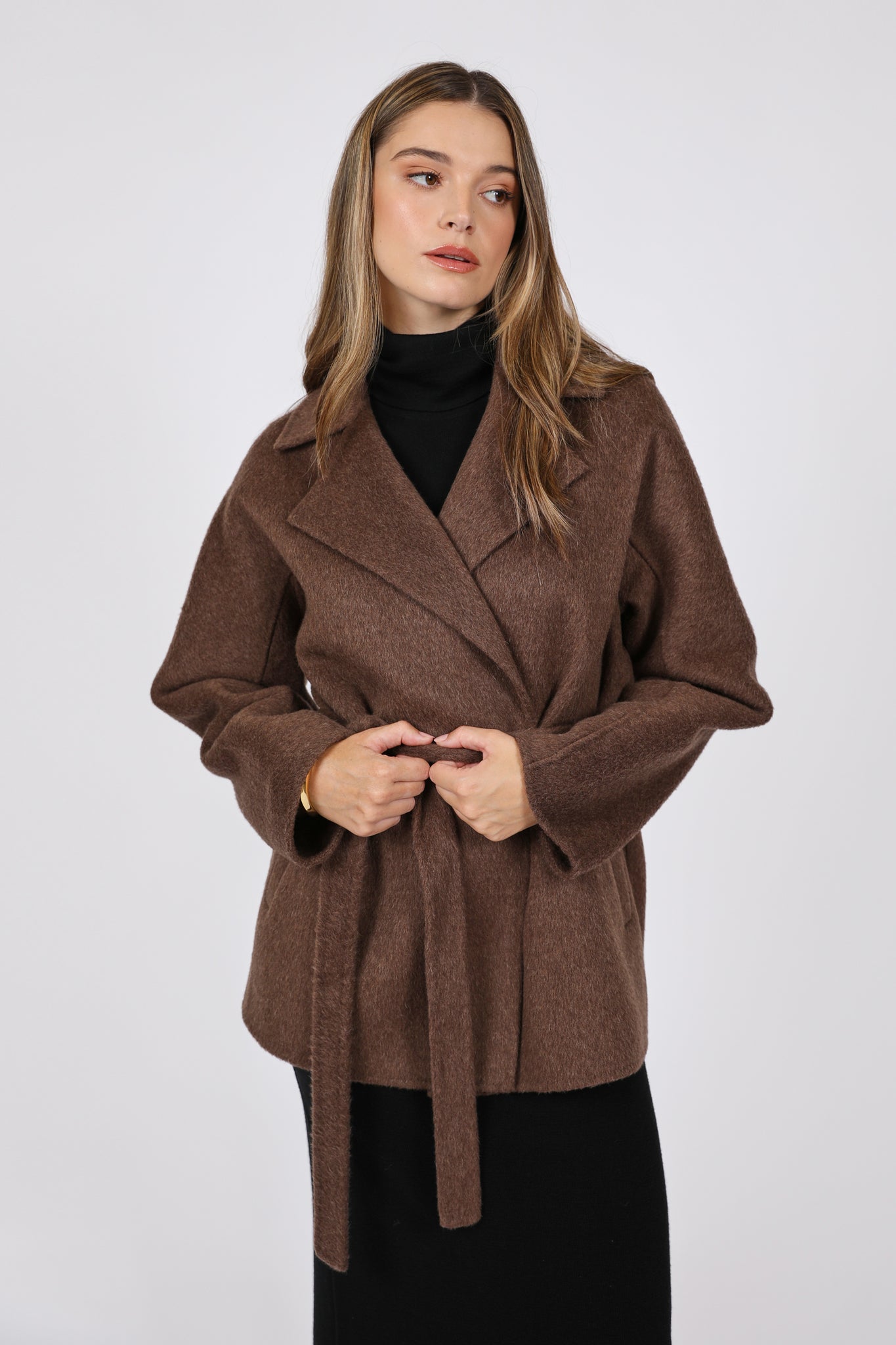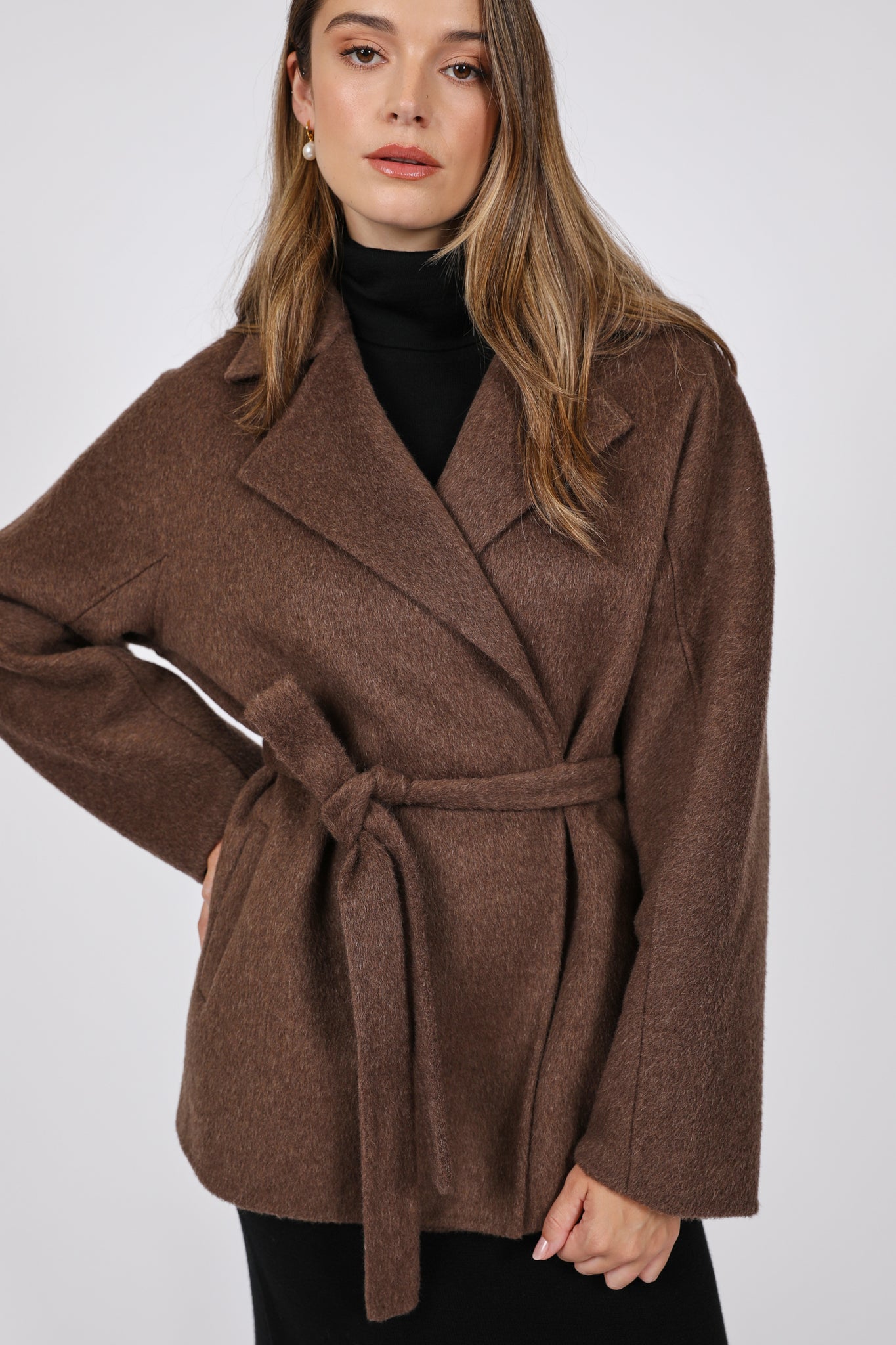 Wrap yourself in premium comfort and warmth with the Grove Wool Coat, a relaxed, longerline short coat designed to layer effortlessly through the season. Featuring a dropped shoulder and a double-breasted wrap front, it comes with a self-tie belt that can be worn loose for an easy, relaxed fit or cinched to create a more defined silhouette. Styled effortlessly with everything from relaxed denim to polished tailoring, this coat will be a lasting wardrobe favourite.