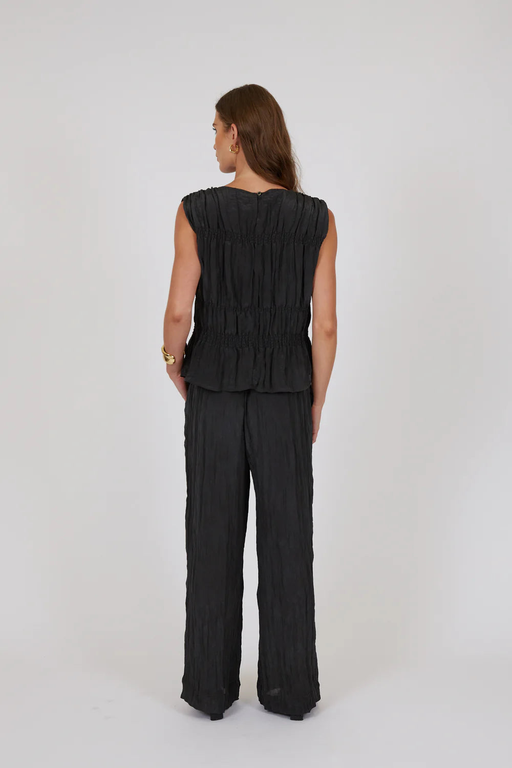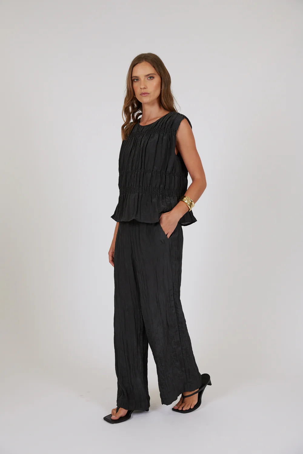 Flowy and textured, the Lumi Pant is an elevated take on a classic. Crafted from a lightweight, crinkled fabric with a subtle sheen, it features a full-length, wide-leg silhouette. The flat front waistband creates a clean, polished look while the elasticated back provides a perfect fit and feel. Finished with angled side pockets, it pairs perfectly with the Lumi Top or Lumi Tank for a coordinated set that feels relaxed yet polished. Also available in Bronzite.