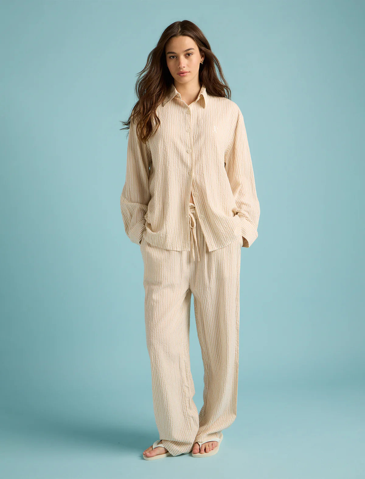 Papinelle x Karen Walker Seersucker Stripe F/L PJ Set - Pepper/Cream
