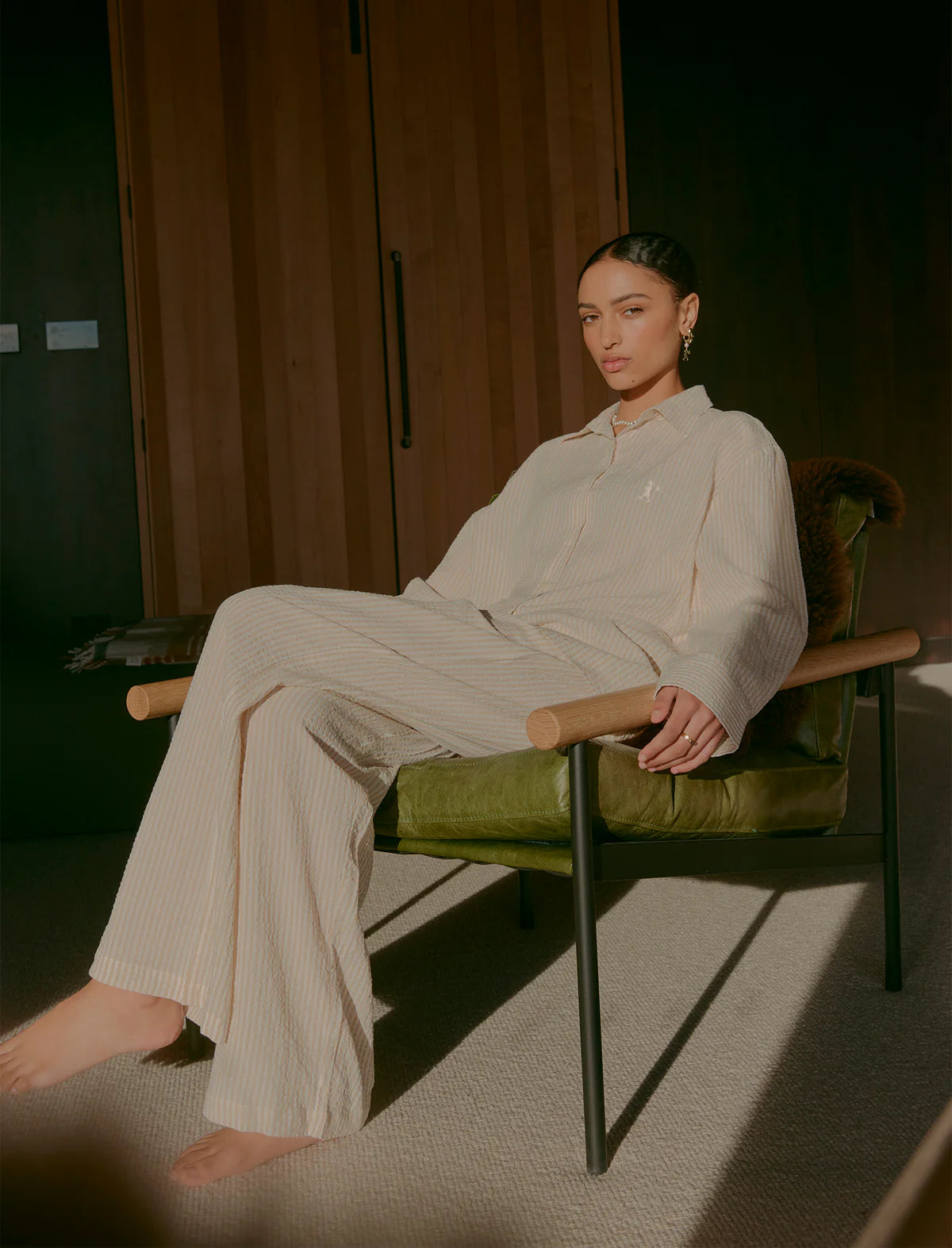Papinelle x Karen Walker Seersucker Stripe F/L PJ Set - Pepper/Cream