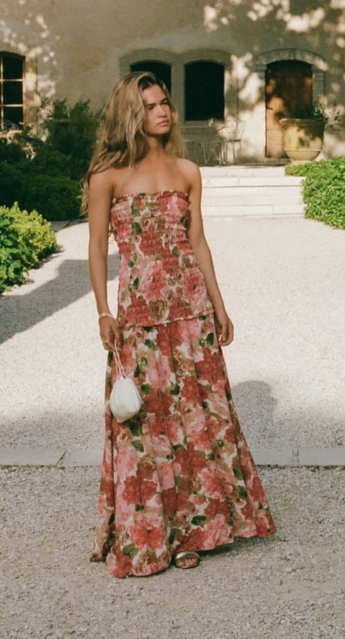 A timeless silhouette designed to move with you. The Samantha Maxi Dress features a shirred bodice, drop waist, and a floating Aline skirt for effortless elegance. Adjustable straps can be worn on the shoulder or tucked in for a strapless look, offering versatile styling. Perfect for any occasion, wear it casually by day or elevate it into the evening with ease.