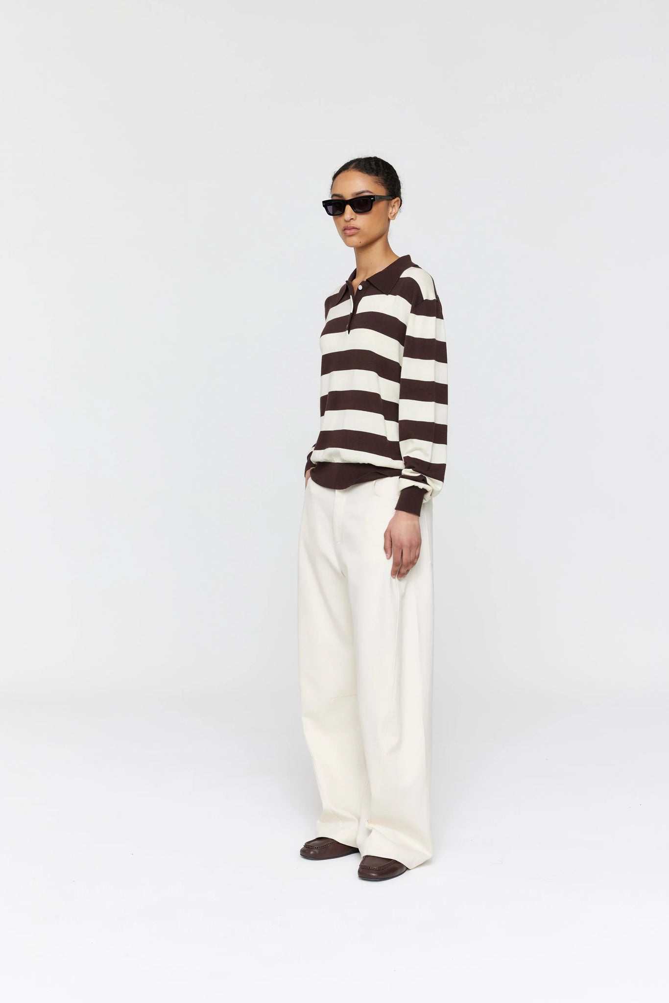 Ricochet Noe Polo - Brown + Cream Stripe