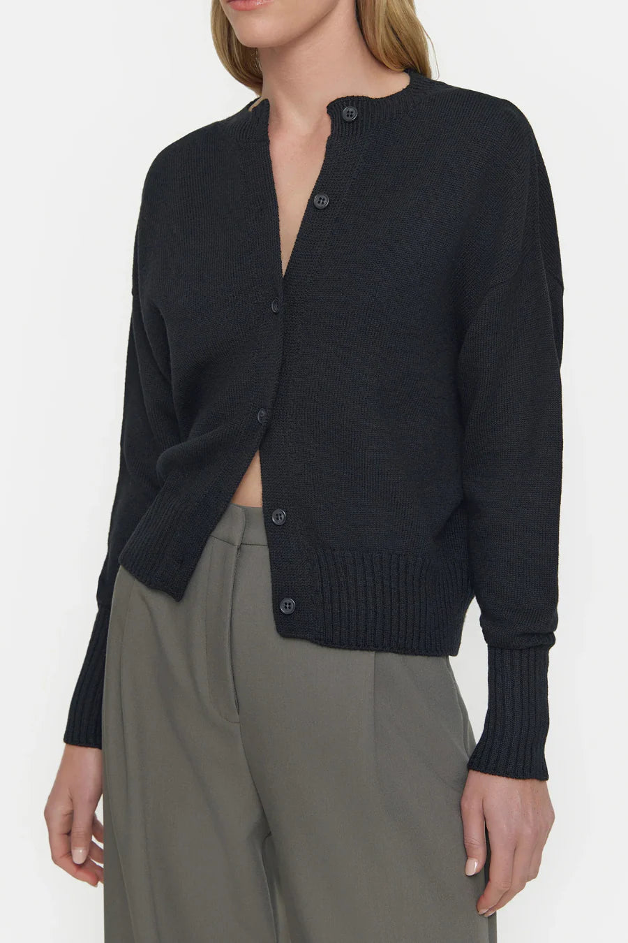 Knitted in Melbourne, the Hart Merino Cardigan is crafted in our signature merino wool. Designed for a relaxed fit with a drop shoulder, this cardigan is finished with resin buttons and ribbed trims.The slightly cropped silhouette cuts just below the hip. Pair casually with denim and sweats, or layer with relaxed tailoring.