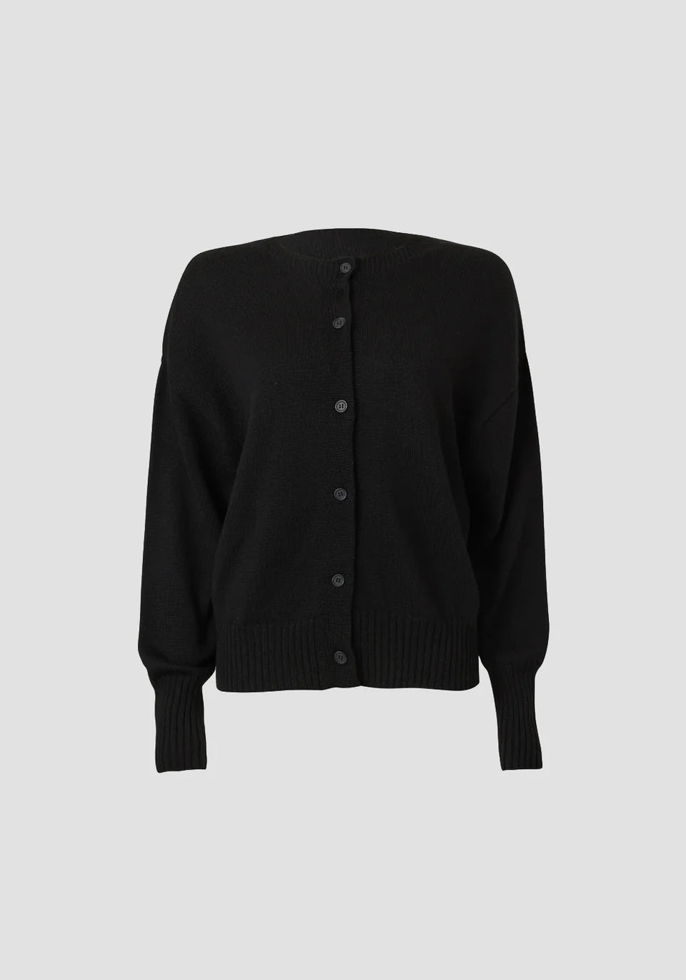 - Circular knitted cropped cardigan - Round neck - Functional button front placket - Slouchy fit - Ribbed hem and sleeve cuffs  100% Merino Wool - Circular knitted cropped cardigan - Round neck - Functional button front placket - Slouchy fit - Ribbed hem and sleeve cuffs  100% Merino Wool